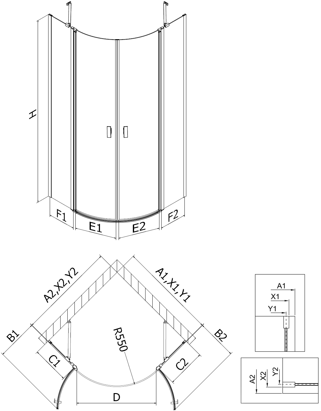 Otočné dvere umožňujú maximálnu slobodu počas používania. Majú pevné závesy vyrobené z odolného materiálu, ktoré nespôsobujú problémy s udržiavaním čistoty a umožňujú ľahký prístup do interiéru kabíny.