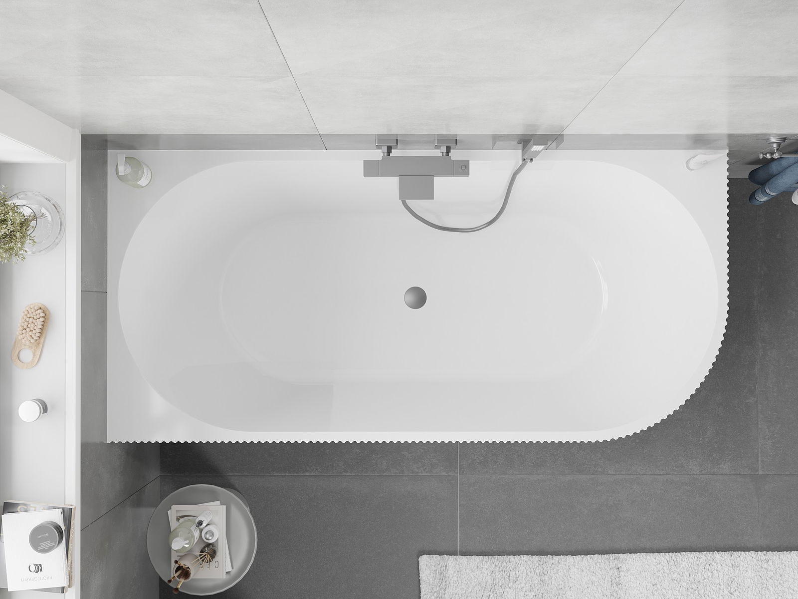 Je to moderný materiál, ktorý kombinuje elegantný vzhľad s vysokou trvanlivosťou. Je odolný proti mechanickému poškodeniu, ľahko sa čistí a je príjemný na dotyk. Transparentná forma a tenký okraj vane jej dodávajú ľahkosť a unikátny charakter, čím vytvárajú efektný prvok v usporiadaní kúpeľne.