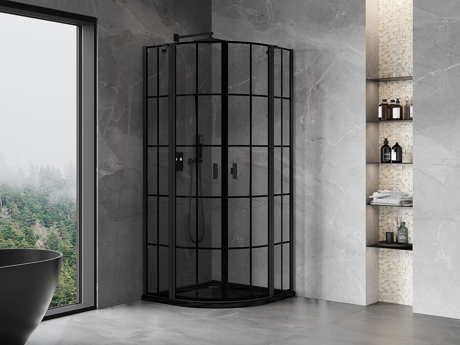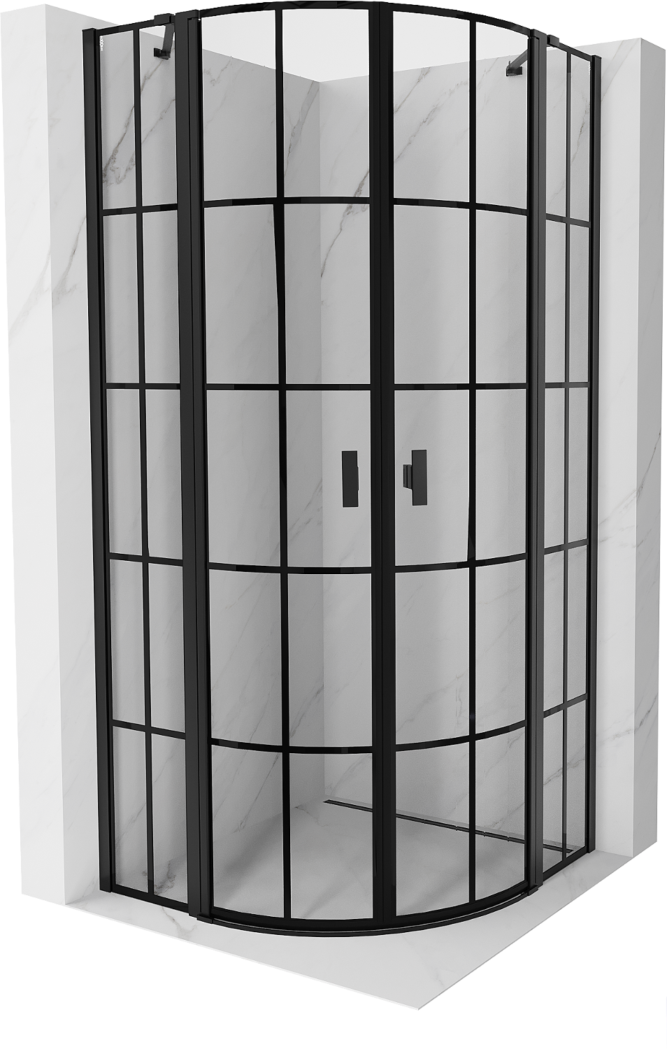 Mexen Mist polokruhová sprchová kabína sklopná 90 x 90 cm, čierna mriežka, čierna - 8A32-090-090-70-77