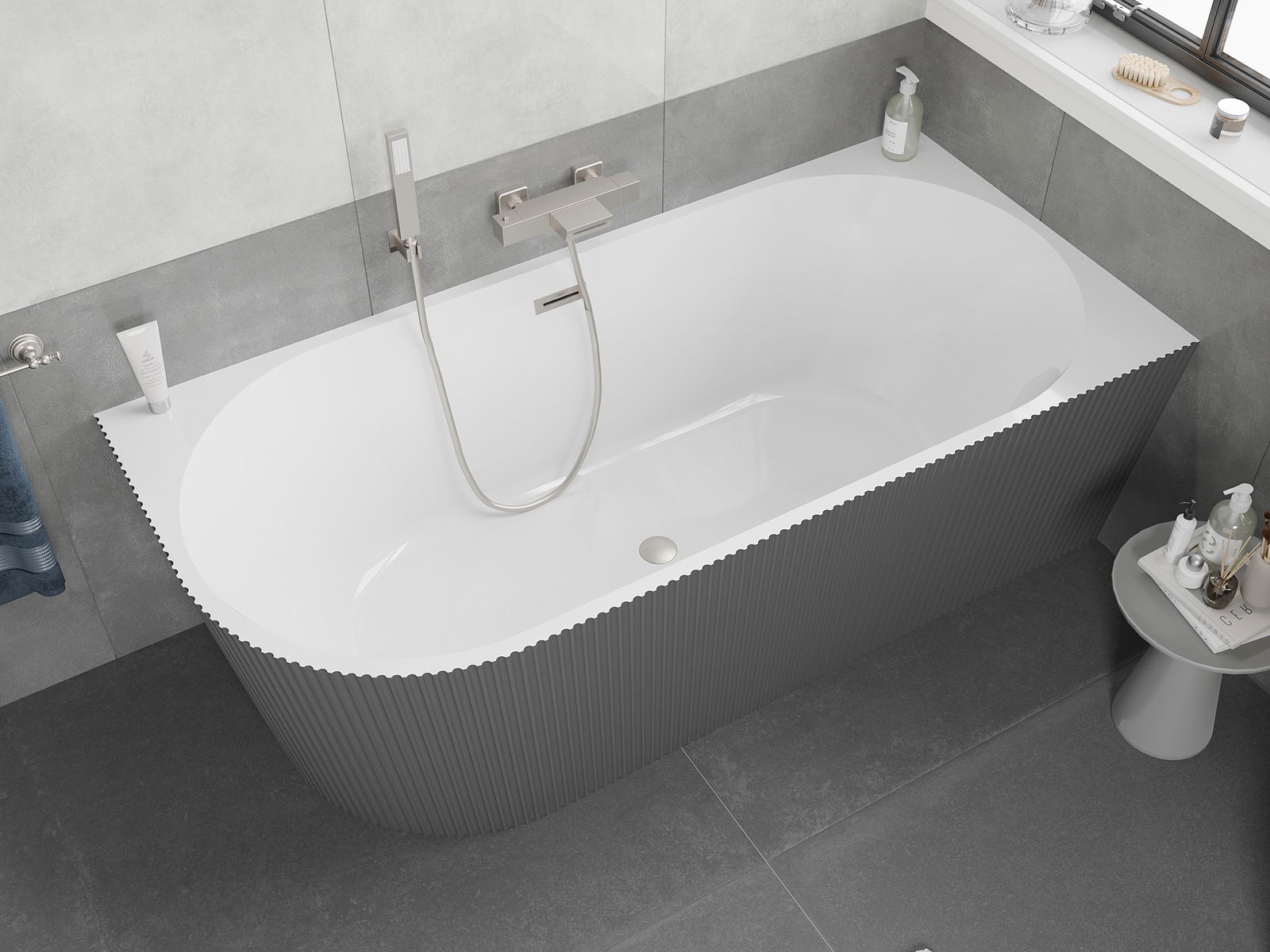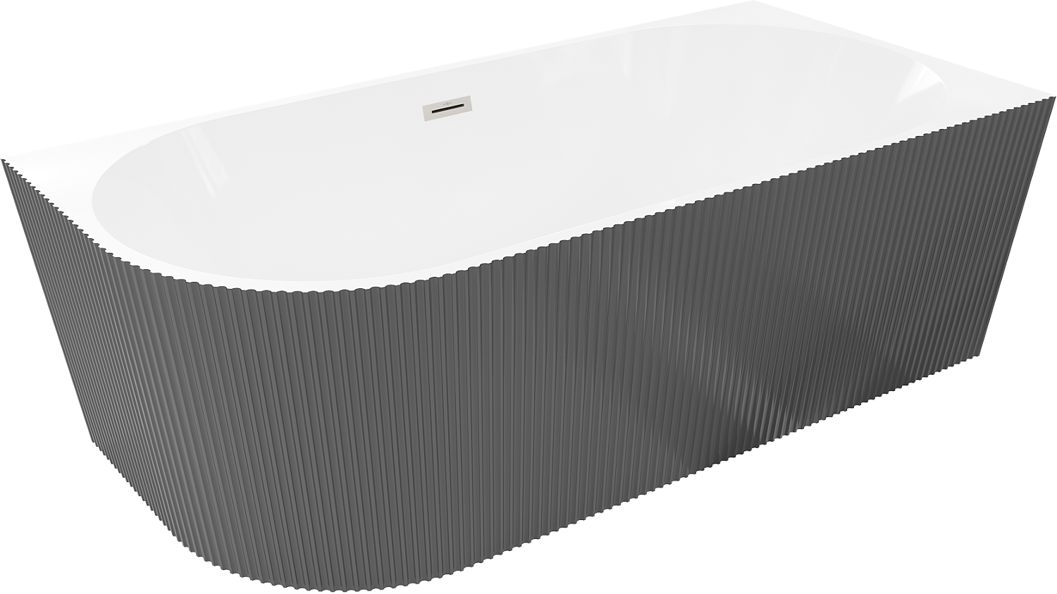 Mexen Silo voľne stojaca rohová pravá vaňa ryhovaná 150 x 75 cm, biela/sivá, prepad brúsený nikel - 52891507562P-97