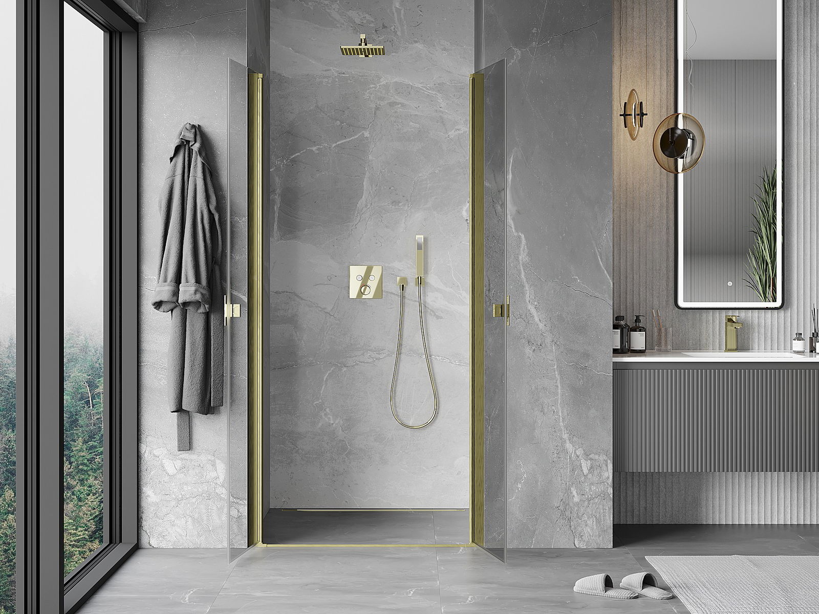 Praktická a pohodlná rukoväť je vyrobená z odolného a pevného kovu. Moderný tvar v kombinácii s povrchovou úpravou prispôsobenou farbe profilov dodáva celku moderný a štýlový vzhľad, zdôrazňujúc estetiku každej kúpeľne.