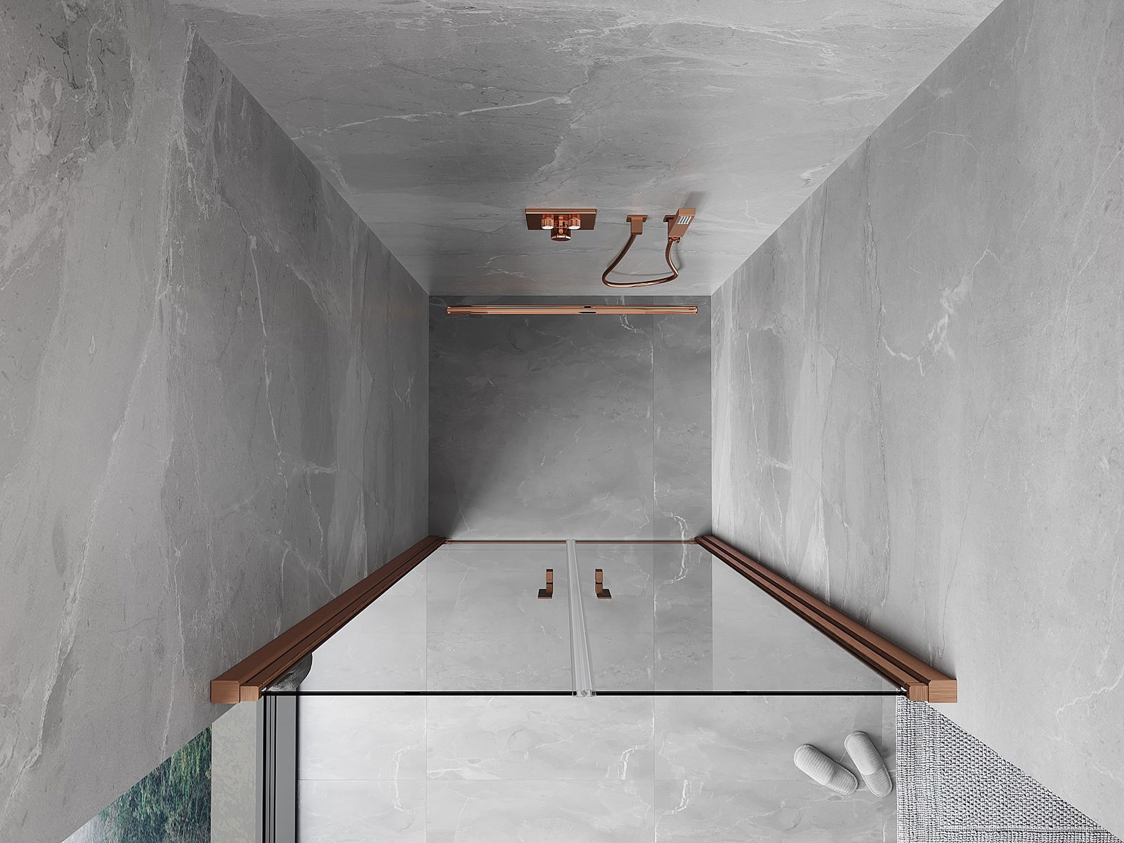 Praktická a pohodlná rukoväť je vyrobená z odolného a pevného kovu. Moderný tvar v kombinácii s povrchovou úpravou prispôsobenou farbe profilov dodáva celku moderný a štýlový vzhľad, zdôrazňujúc estetiku každej kúpeľne.