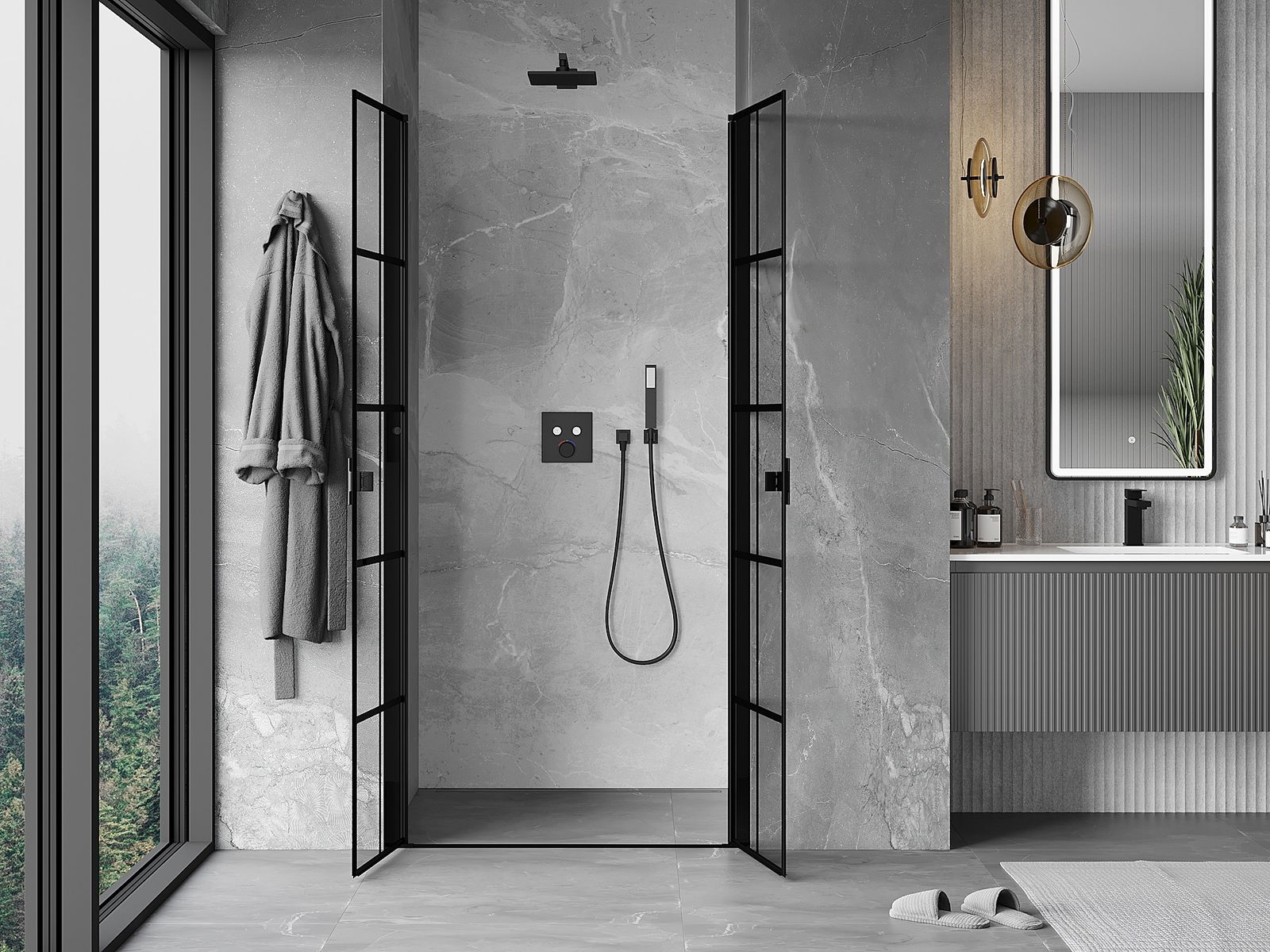 Praktická a pohodlná rukoväť je vyrobená z odolného a pevného kovu. Moderný tvar v kombinácii s povrchovou úpravou prispôsobenou farbe profilov dodáva celku moderný a štýlový vzhľad, zdôrazňujúc estetiku každej kúpeľne.