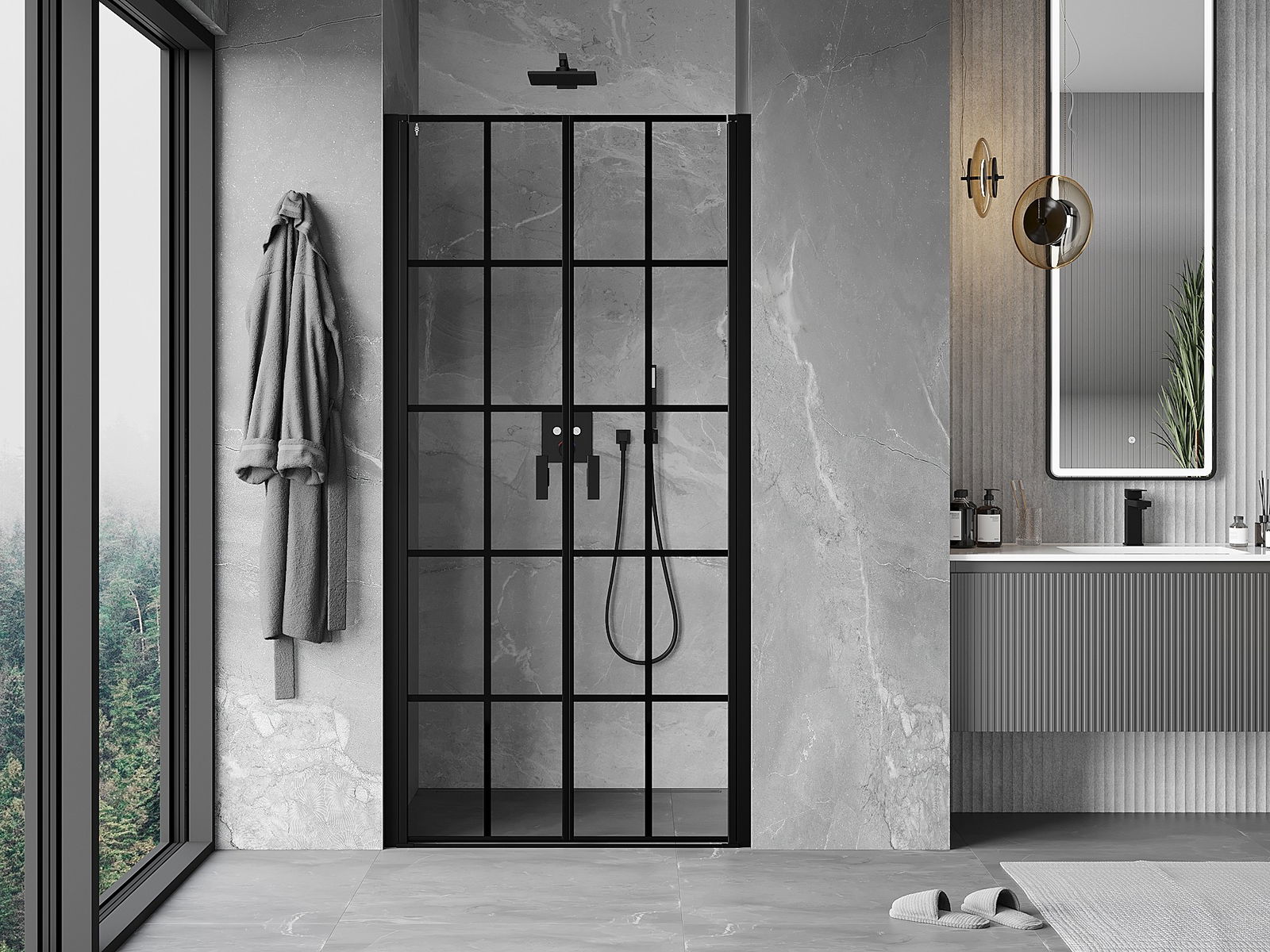 Praktická a pohodlná rukoväť je vyrobená z odolného a pevného kovu. Moderný tvar v kombinácii s povrchovou úpravou prispôsobenou farbe profilov dodáva celku moderný a štýlový vzhľad, zdôrazňujúc estetiku každej kúpeľne.