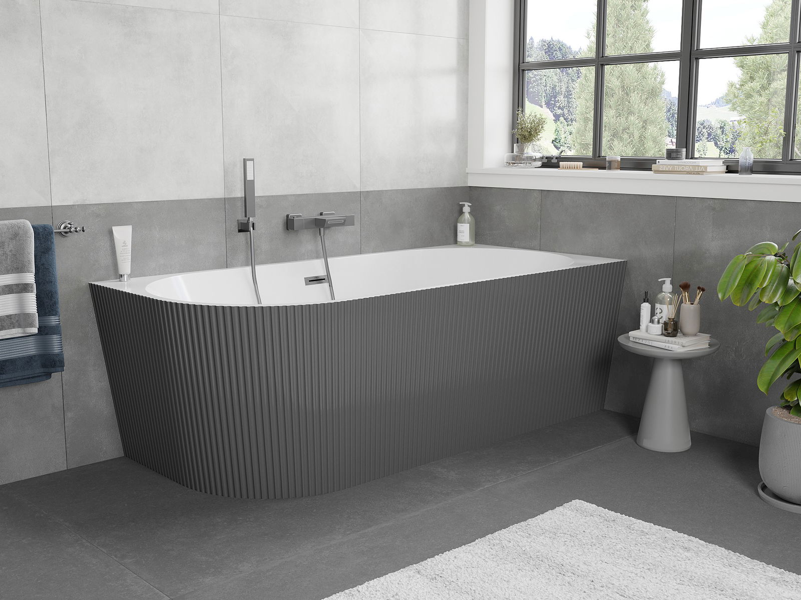Mexen Silo voľne stojaca rohová vaňa pravá ryhovaná 170 x 80 cm, biela/sivá, prepad gun gray kartáčovaný