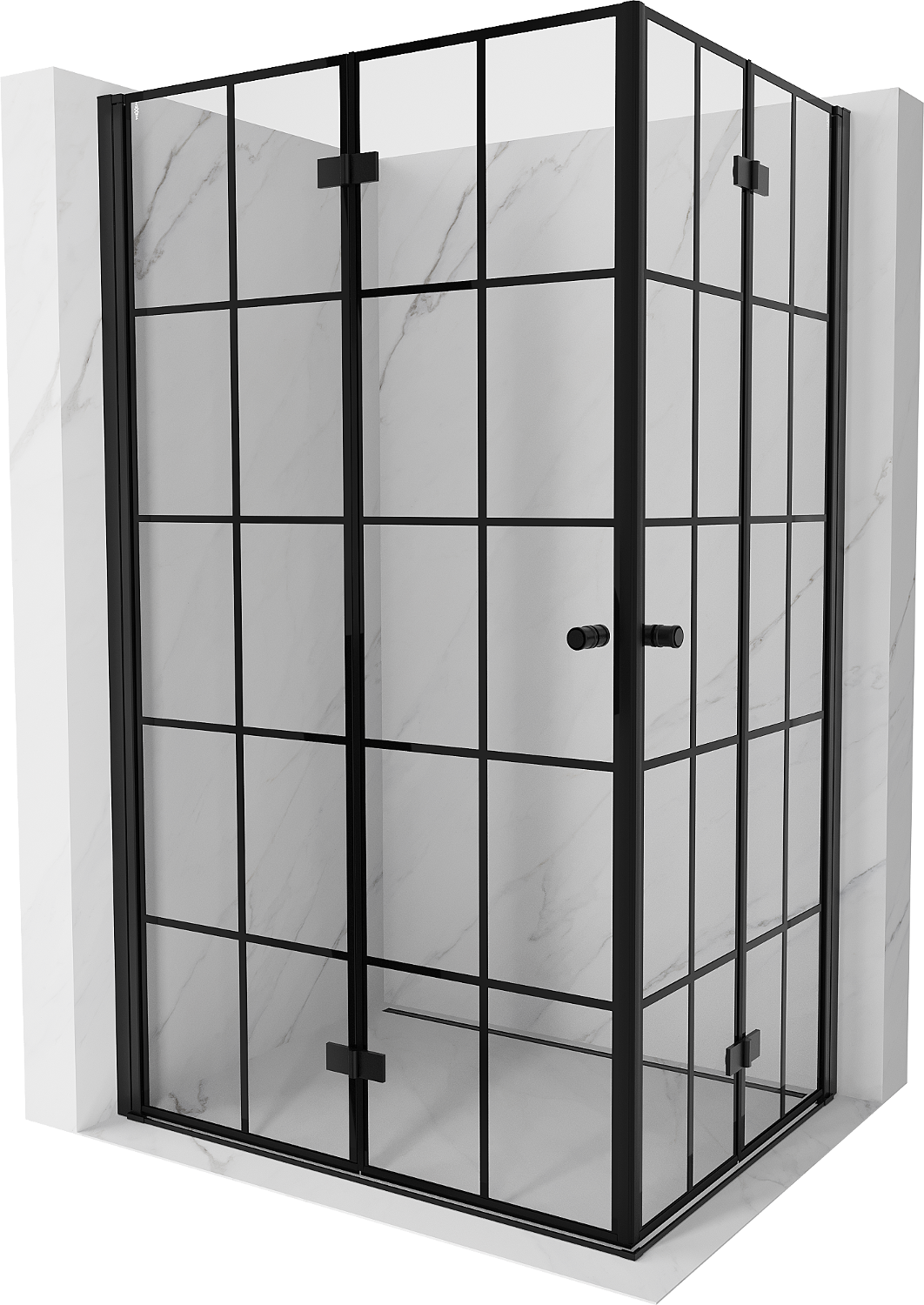 Mexen Mist-F Duo skladacia sprchová kabína ľavá 95 x 85 cm, čierna mriežka, čierna - 8A6-095L-085P-70-77