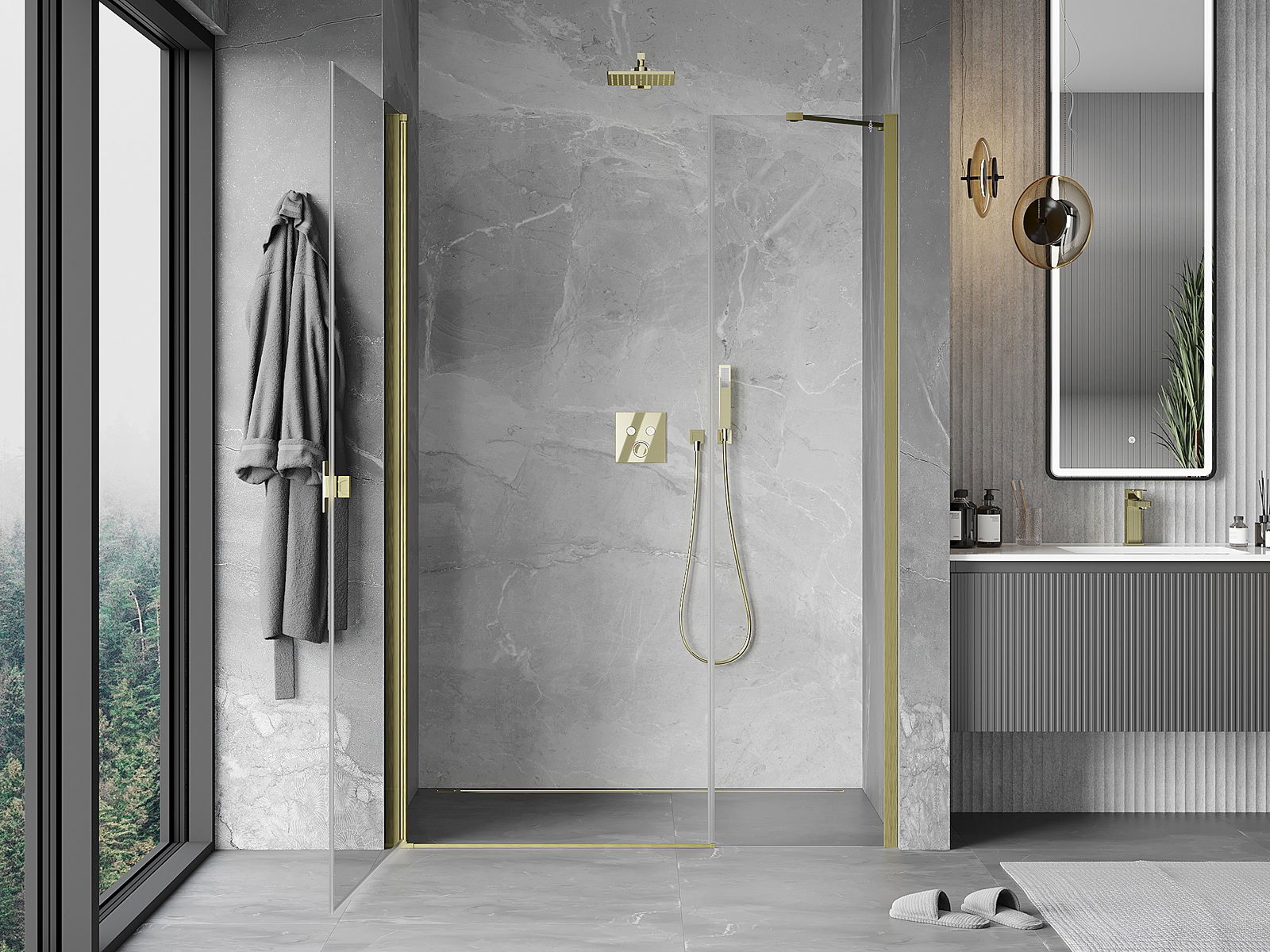 Praktická a pohodlná rukoväť je vyrobená z odolného a pevného kovu. Moderný tvar v kombinácii s povrchovou úpravou prispôsobenou farbe profilov dodáva celku moderný a štýlový vzhľad, zdôrazňujúc estetiku každej kúpeľne.