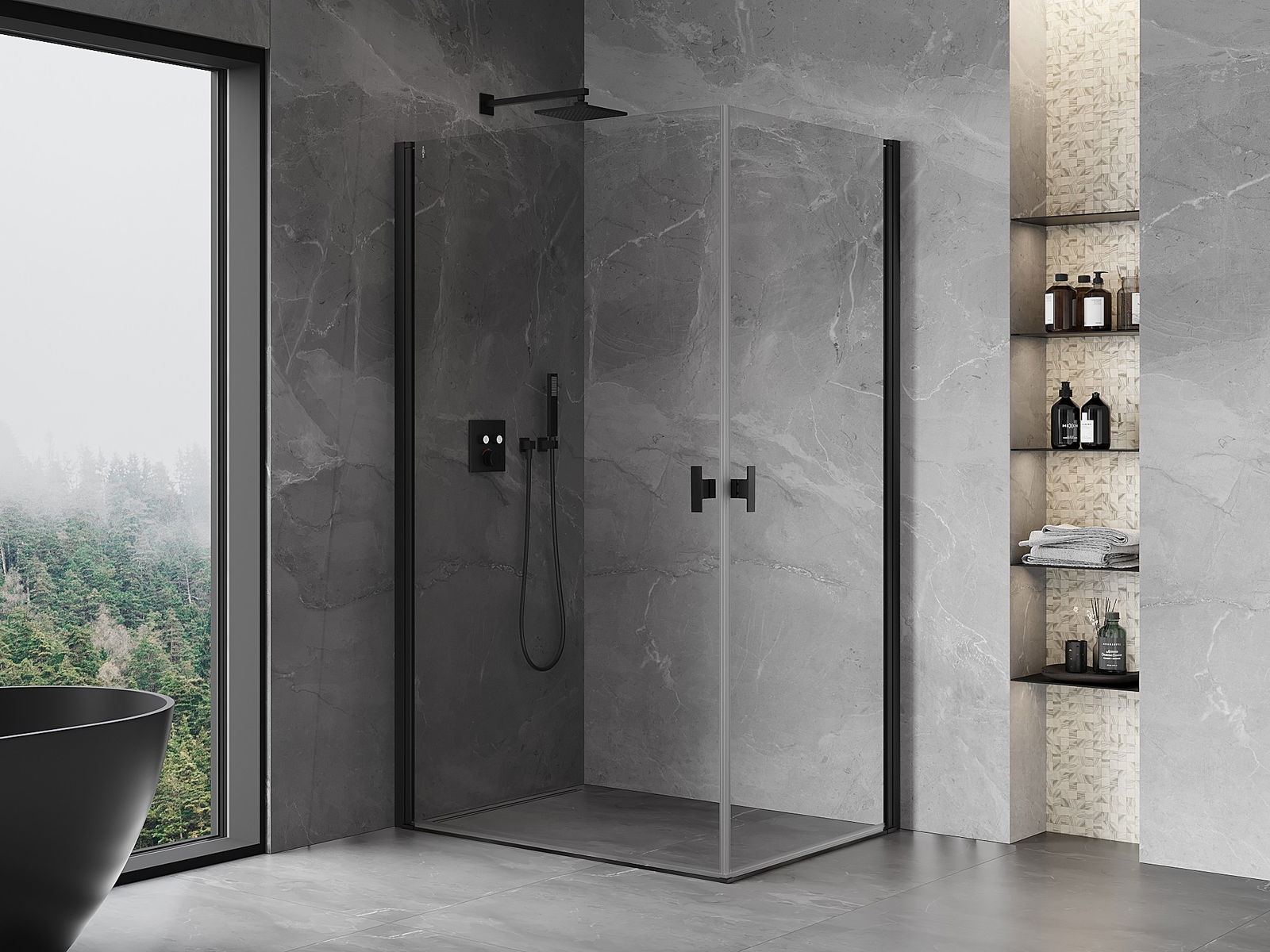 Mexen Mist-B Duo sprchový kút s otváracími dverami 90 x 85 cm, priehľadný, čierny - 8A2-090-085-70-00