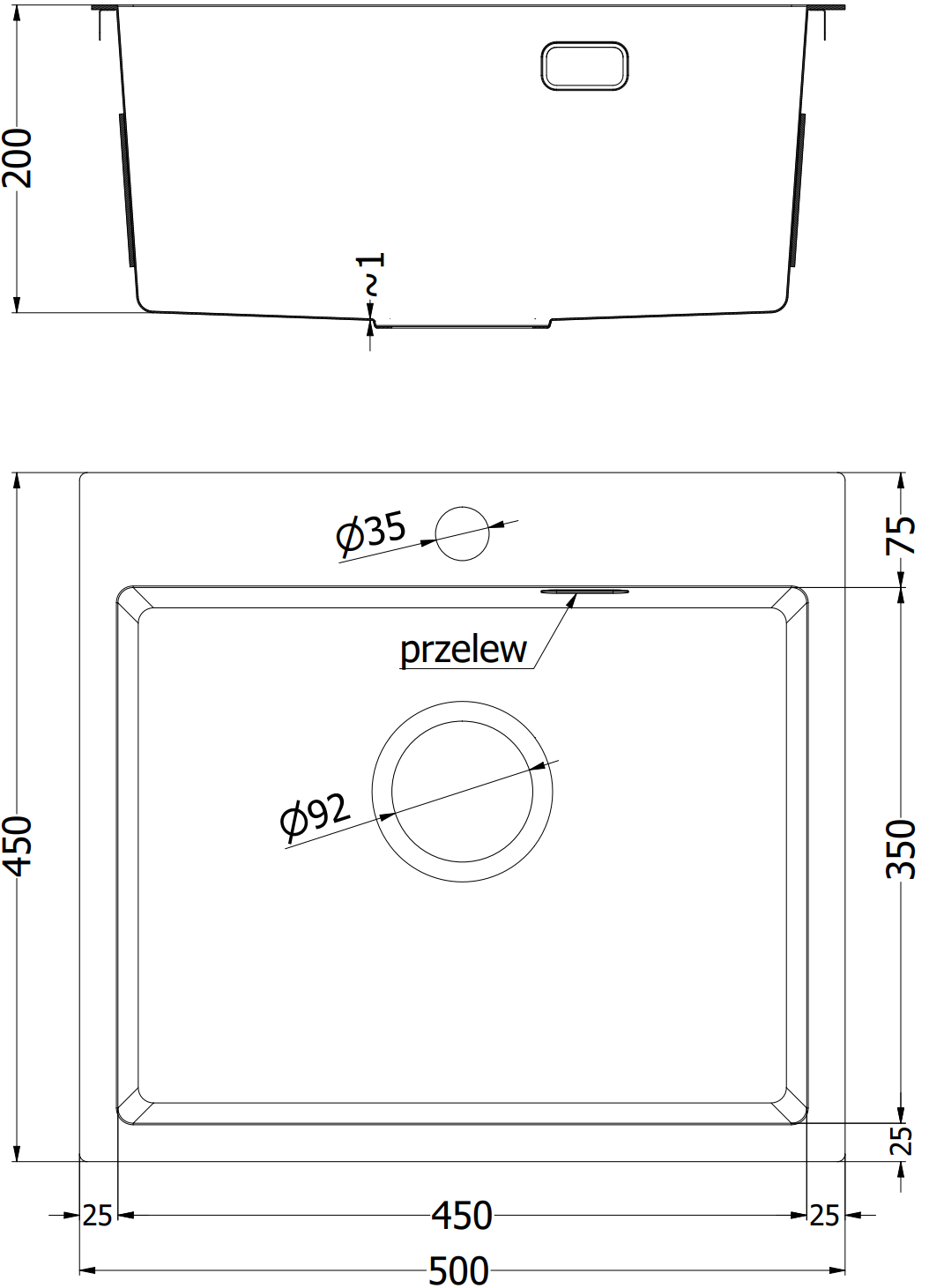 Drez má skrytý prepadový otvor, ktorý chráni pred preliatím vody, pričom si zachováva elegantný vzhľad. Diskrétne zakomponovaný do steny drezu, nenarušuje jeho estetiku. Toto praktické a štýlové riešenie spája bezpečnosť s moderným dizajnom.