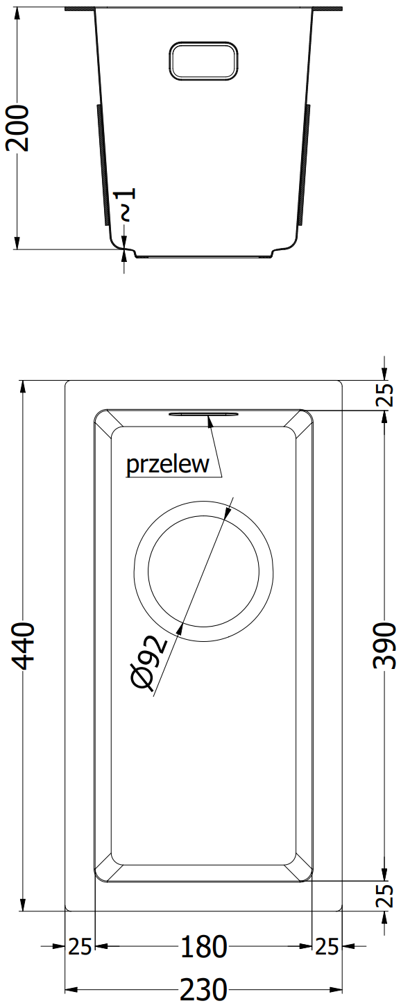 Drez má skrytý prepadový otvor, ktorý chráni pred preliatím vody, pričom si zachováva elegantný vzhľad. Diskrétne zakomponovaný do steny drezu, nenarušuje jeho estetiku. Toto praktické a štýlové riešenie spája bezpečnosť s moderným dizajnom.