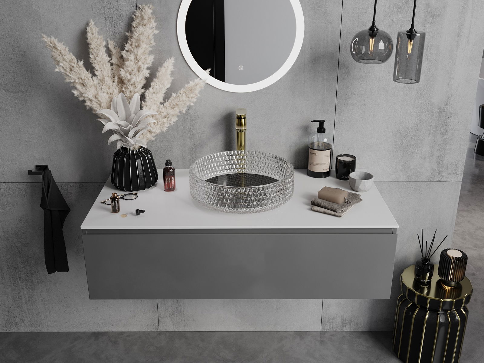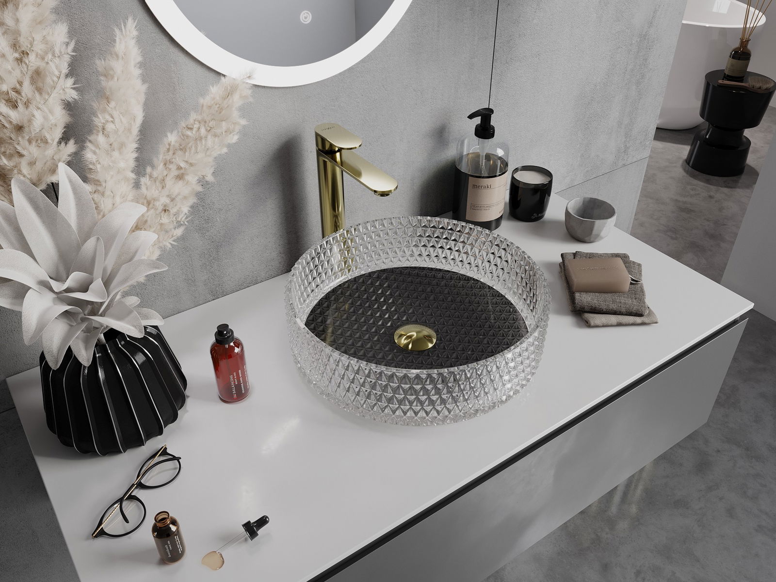 Umyvadlo vyniká výnimočnou štruktúrou kryštálov, ktorá mu dodáva jedinečný a mimoriadne pôsobivý vzhľad. Kryštály sa trblietajú na svetle, upútavajú pozornosť a pridávajú eleganciu. Praktické a štýlové riešenie pre každú kúpeľňu.