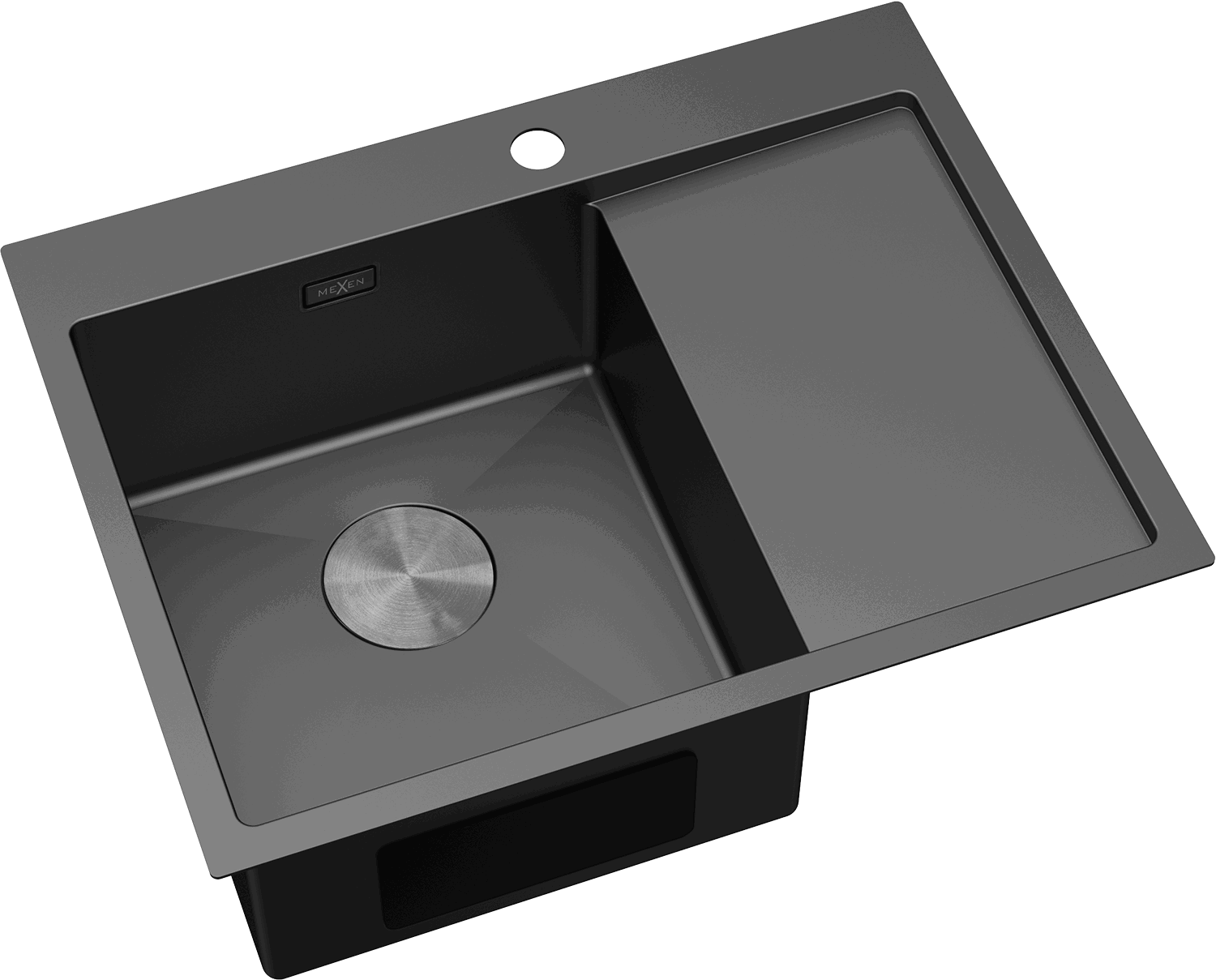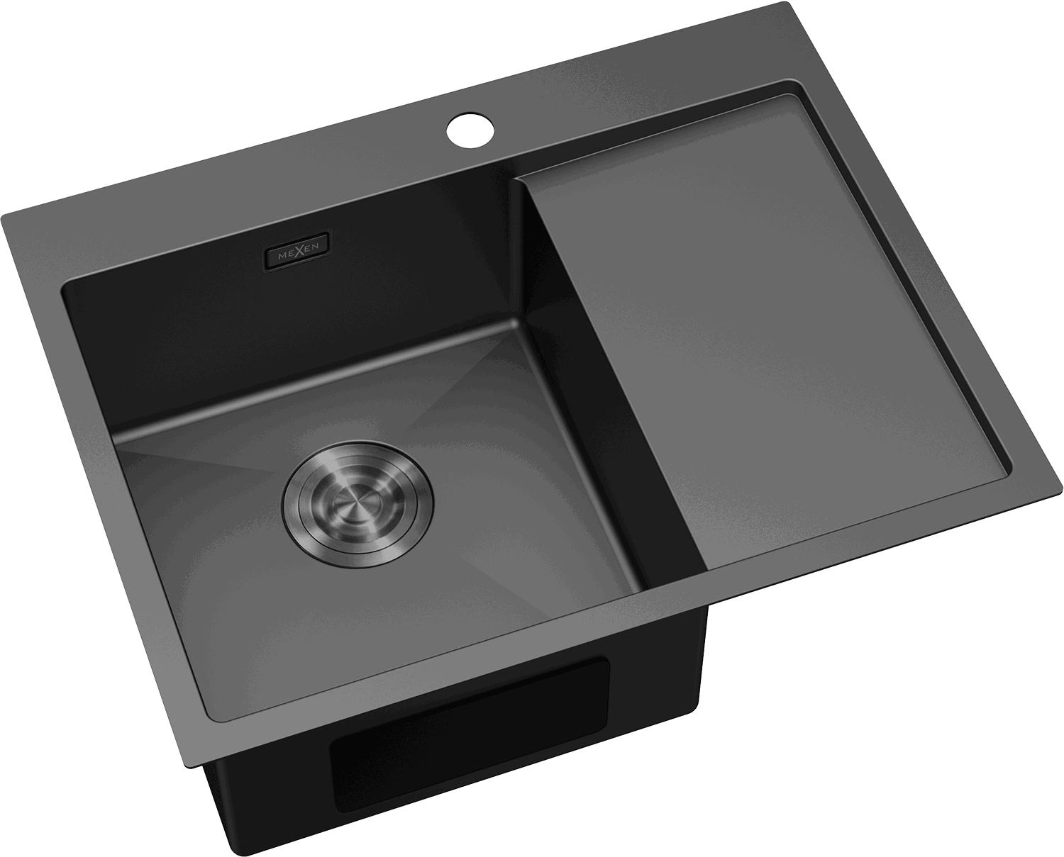Mexen Exar oceľový drez s 1-komorou a odkvapkávačom, ľavý 620 x 480 mm, čierny - 6431621005L-70