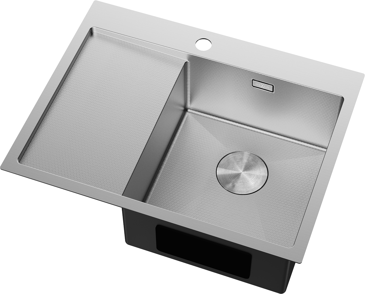Mexen Exar oceľový kuchynský drez s 1 komorou a odkvapkávačom, pravý 620 x 480 mm, inox HC - 6432621005P-01HC