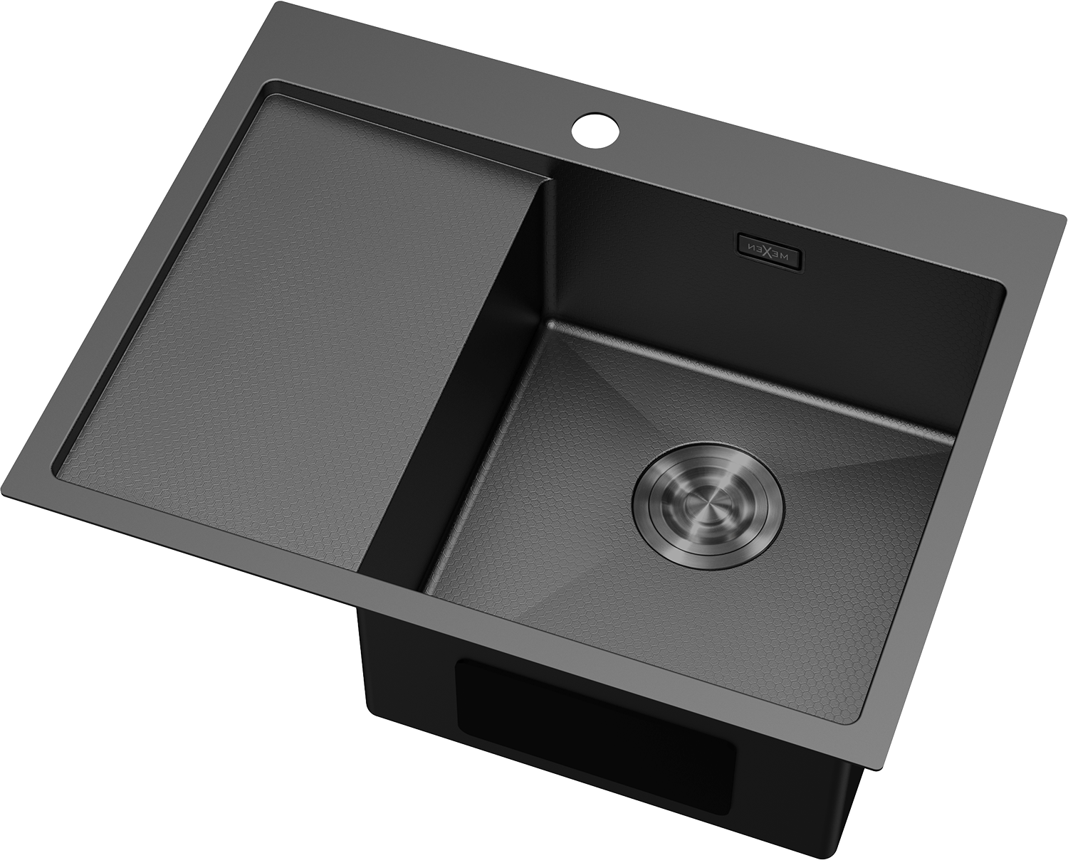 Mexen Exar oceľový drez s 1 komorou a odkvapkávačom, pravý 620 x 480 mm, čierny HC - 6432621005P-70HC