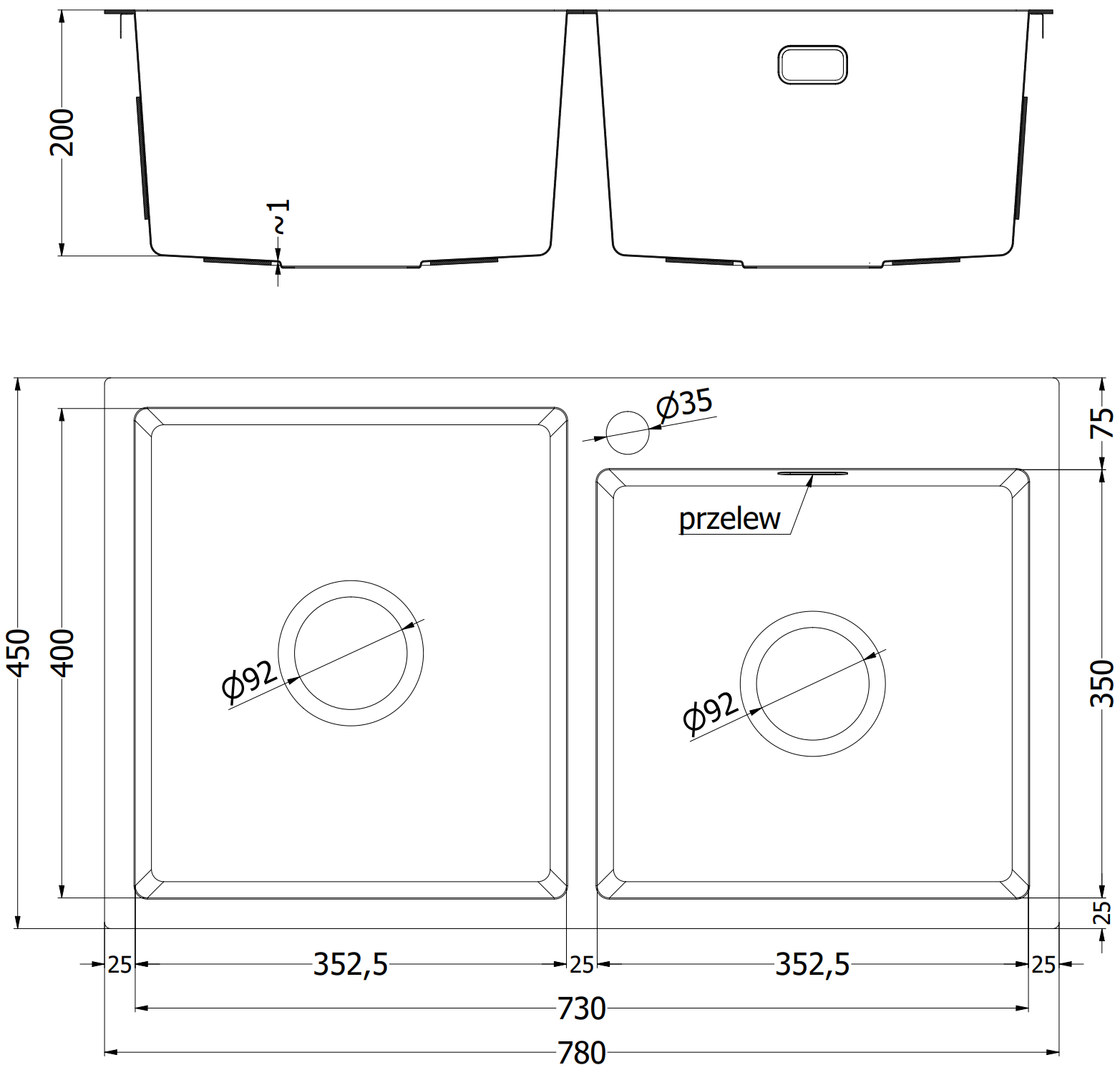 Drez má skrytý prepadový otvor, ktorý chráni pred preliatím vody, pričom si zachováva elegantný vzhľad. Diskrétne zakomponovaný do steny drezu, nenarušuje jeho estetiku. Toto praktické a štýlové riešenie spája bezpečnosť s moderným dizajnom.