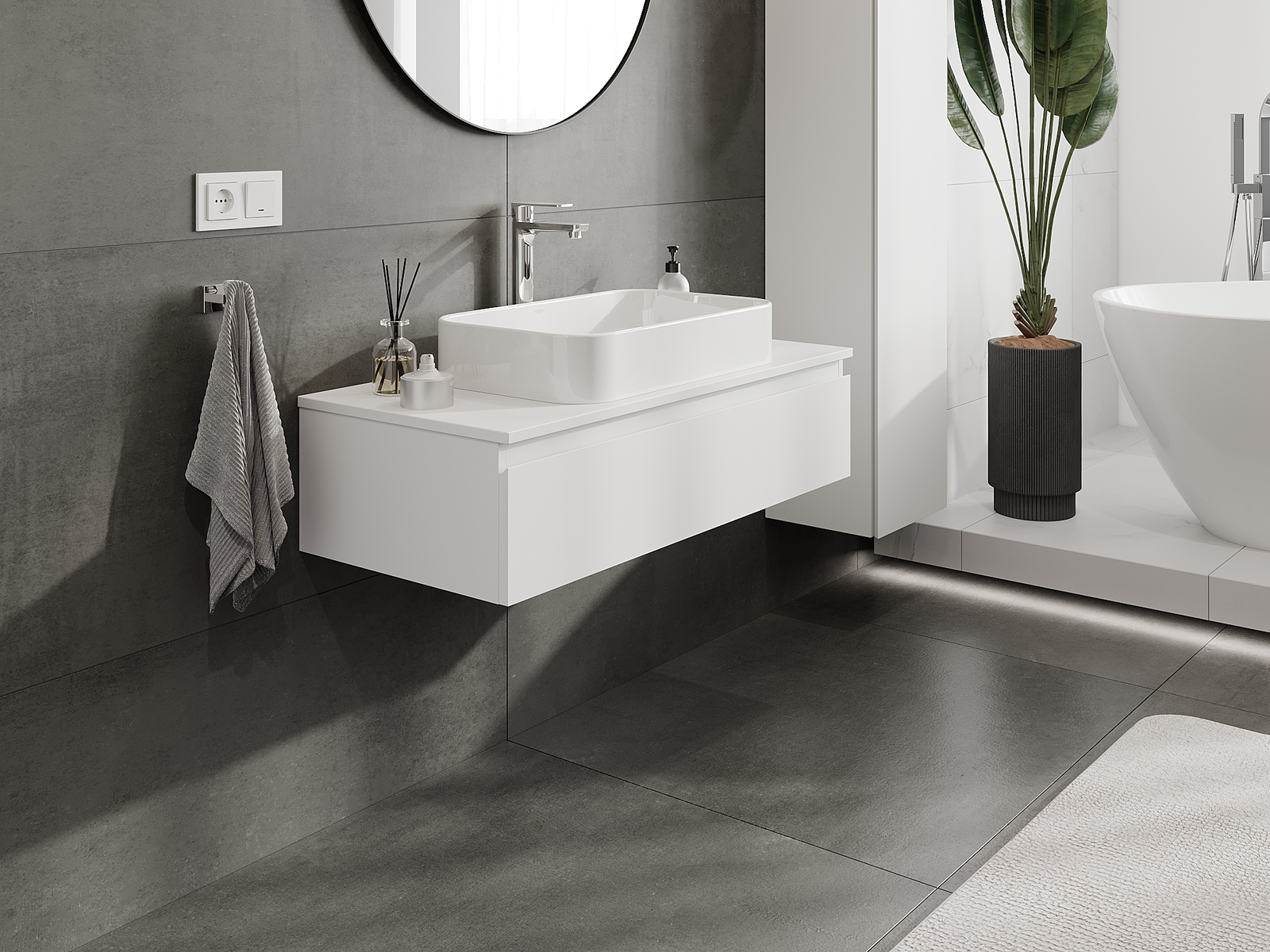 Naše modulárne kúpeľňové nábytkové prvky možno kombinovať v rôznych farebných konfiguráciách, čo umožňuje úplnú personalizáciu. Môžete si vybrať vzhľad aj funkcie jednotlivých prvkov, čo umožňuje prispôsobiť nábytok vašim vlastným štýlovým a používateľským preferenciám.