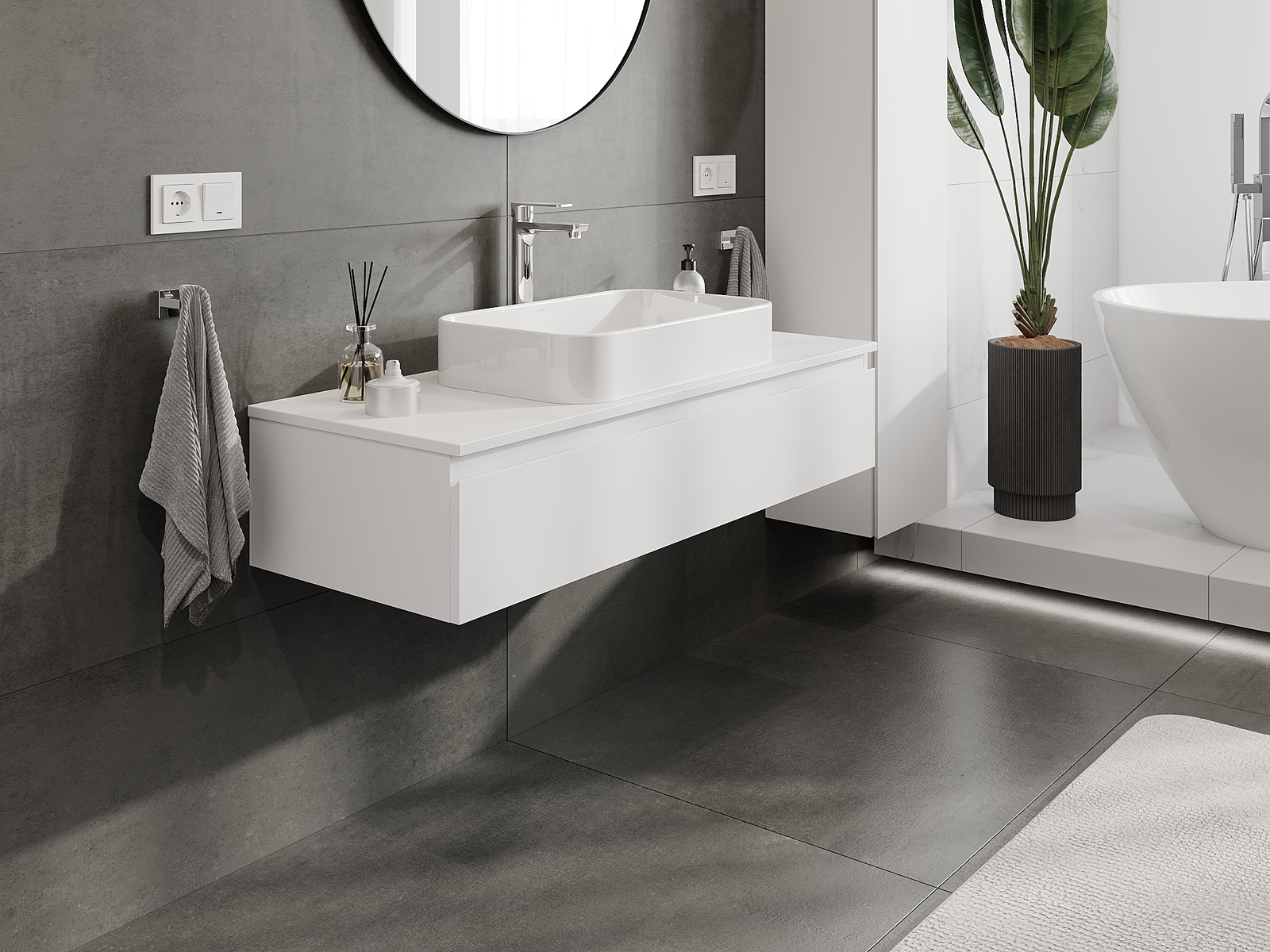 Naše modulárne kúpeľňové nábytkové prvky možno kombinovať v rôznych farebných konfiguráciách, čo umožňuje úplnú personalizáciu. Môžete si vybrať vzhľad aj funkcie jednotlivých prvkov, čo umožňuje prispôsobiť nábytok vašim vlastným štýlovým a používateľským preferenciám.