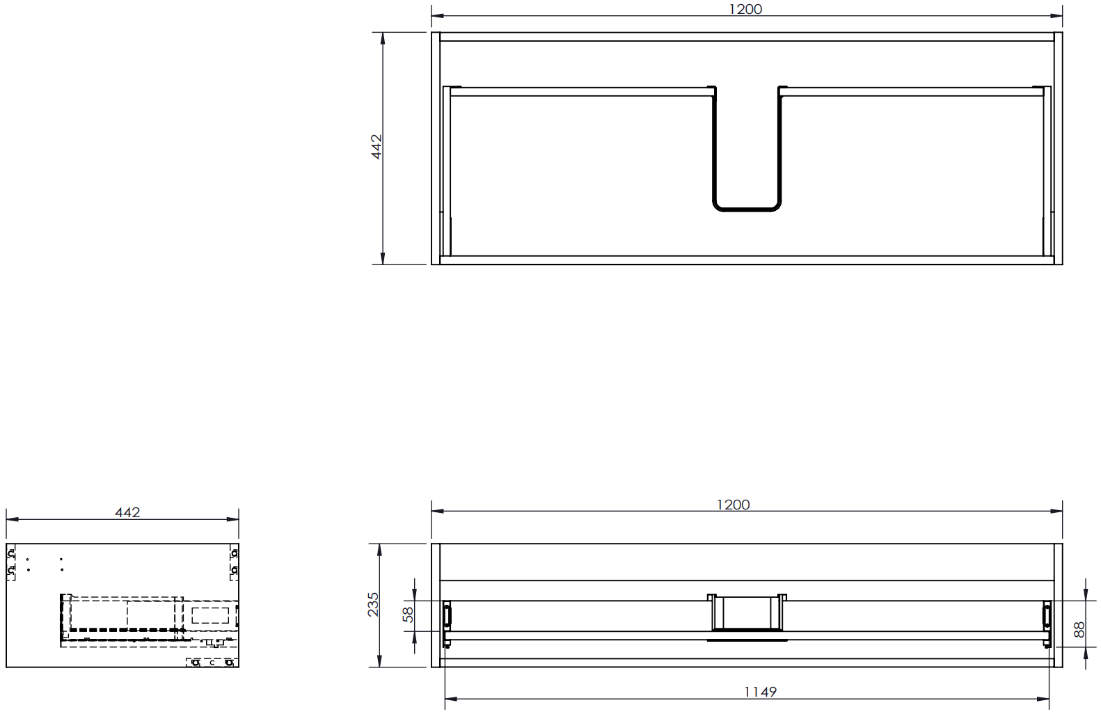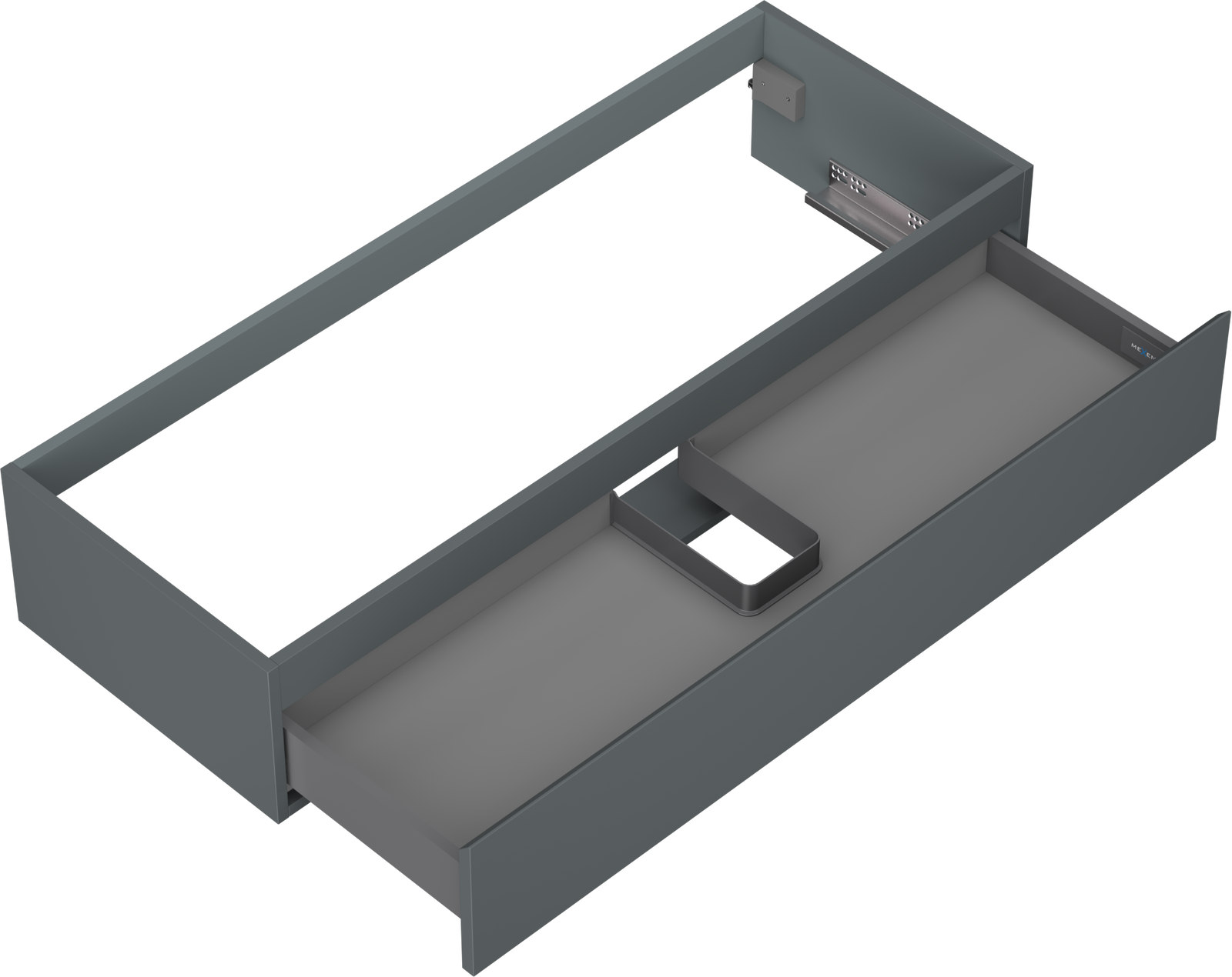 Výrez v zásuvke je navrhnutý tak, aby pojal sifón, ktorý je nevyhnutný v umývadlových inštaláciách. Vďaka tomu môže byť nábytok namontovaný plne funkčne, bez nutnosti vzdávať sa priestoru v zásuvke v prospech inštalácie.