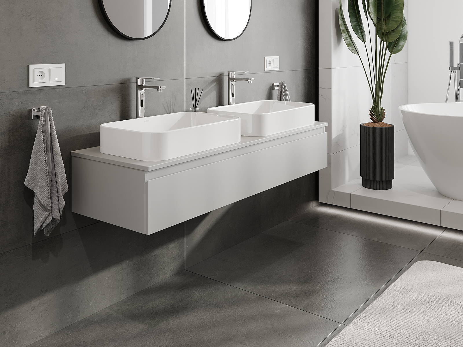 Vďaka pevným materiálom, precíznemu prevedeniu a moderným technologickým riešeniam, produkt poskytuje pohodlie používania, odolnosť voči vlhkosti a zmenám teploty, ako aj elegantný vzhľad, ktorý sa hodí k rôznym štýlom kúpeľní.