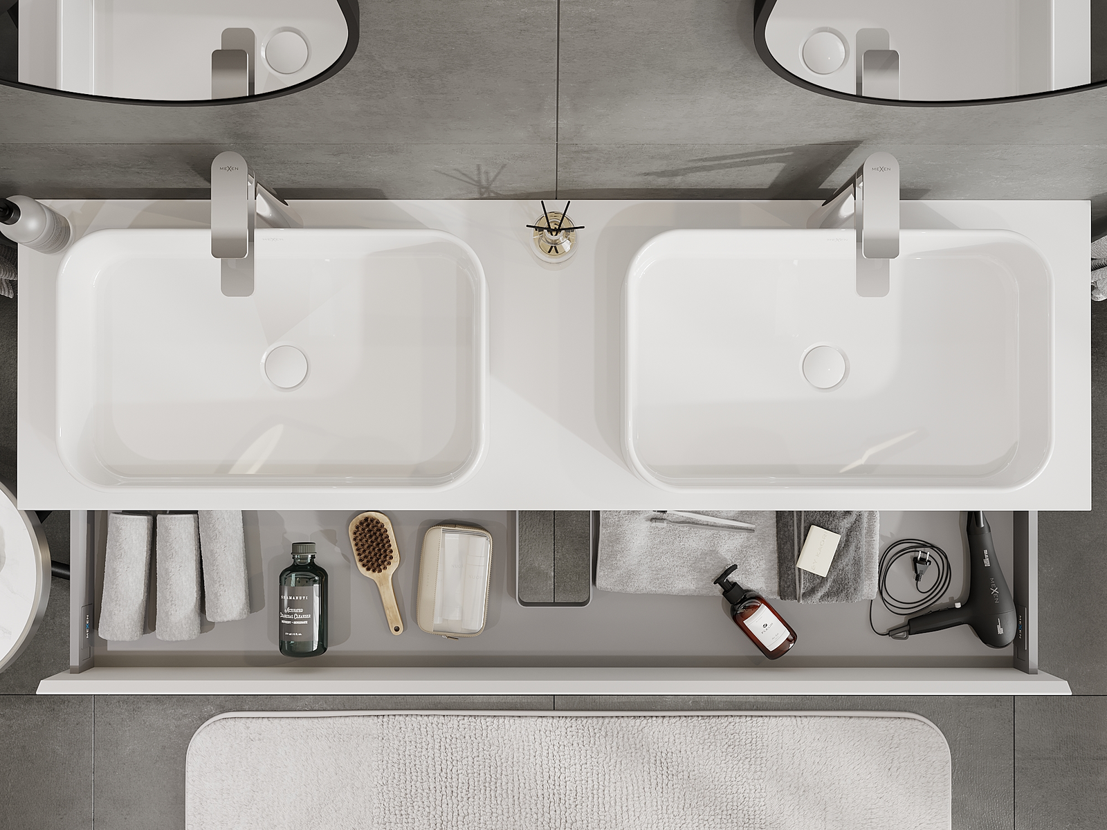Naše modulárne kúpeľňové nábytkové prvky možno kombinovať v rôznych farebných konfiguráciách, čo umožňuje úplnú personalizáciu. Môžete si vybrať vzhľad aj funkcie jednotlivých prvkov, čo umožňuje prispôsobiť nábytok vašim vlastným štýlovým a používateľským preferenciám.