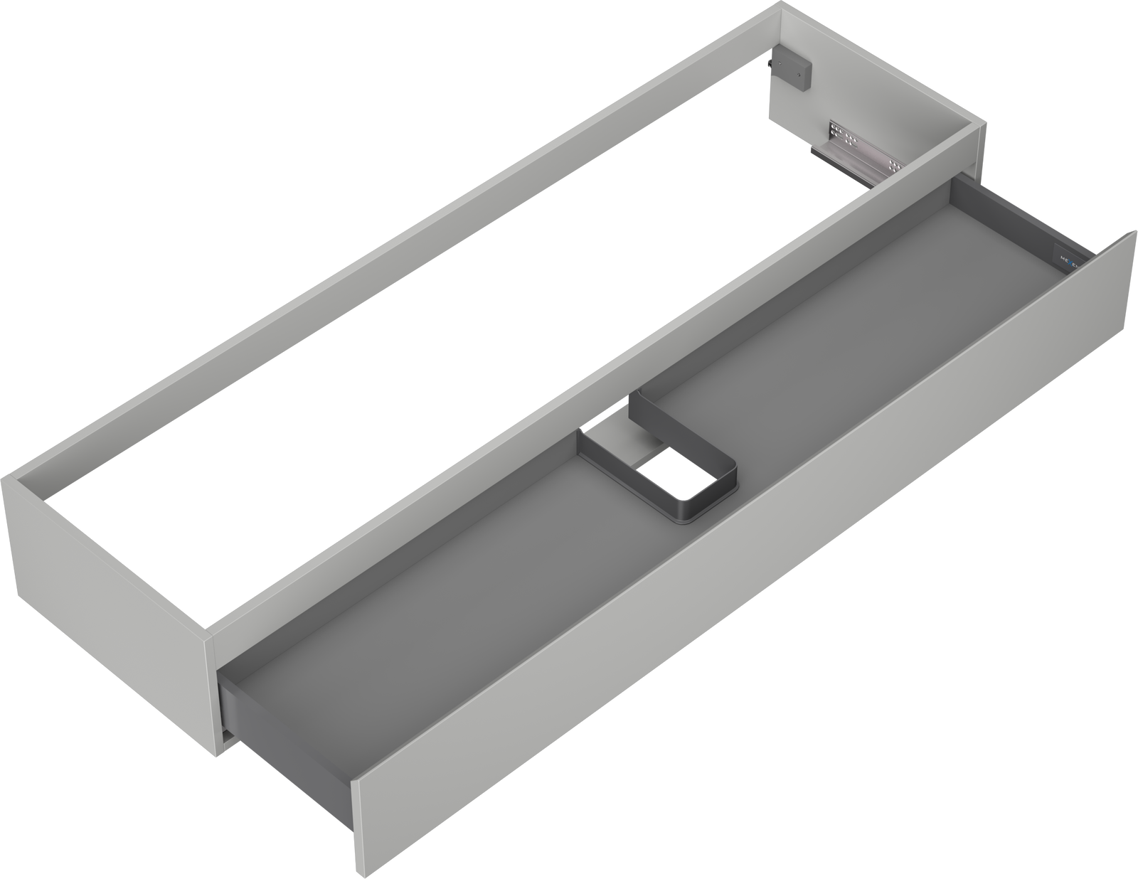 Výrez v zásuvke je navrhnutý tak, aby pojal sifón, ktorý je nevyhnutný v umývadlových inštaláciách. Vďaka tomu môže byť nábytok namontovaný plne funkčne, bez nutnosti vzdávať sa priestoru v zásuvke v prospech inštalácie.