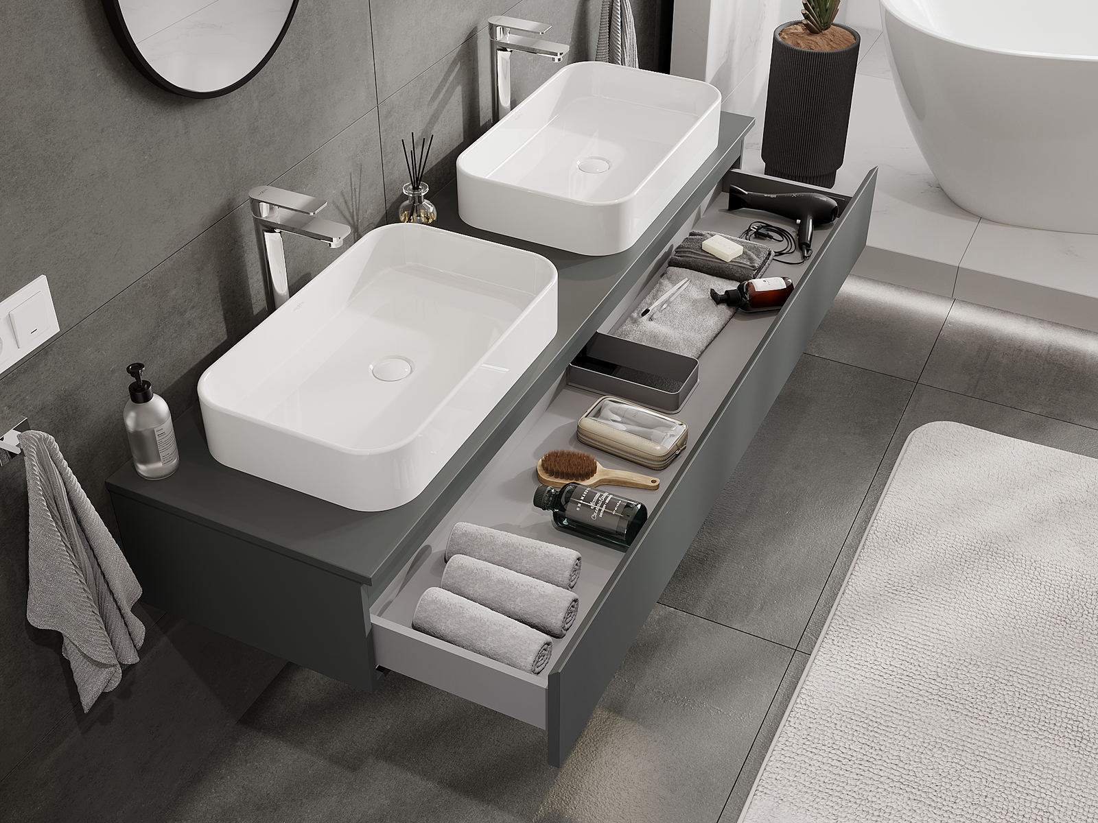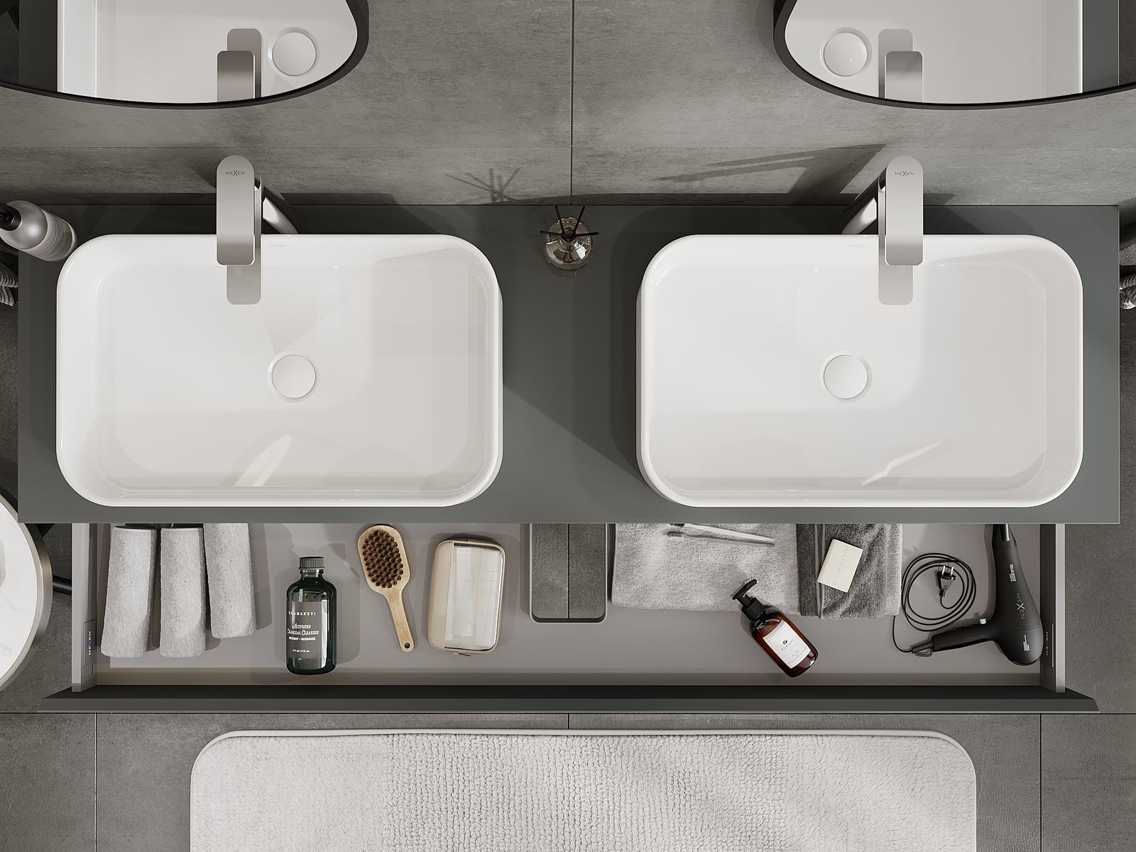 Naše modulárne kúpeľňové nábytkové prvky možno kombinovať v rôznych farebných konfiguráciách, čo umožňuje úplnú personalizáciu. Môžete si vybrať vzhľad aj funkcie jednotlivých prvkov, čo umožňuje prispôsobiť nábytok vašim vlastným štýlovým a používateľským preferenciám.