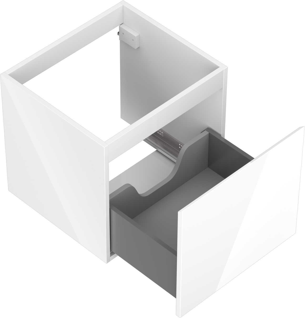 Výrez v zásuvke je navrhnutý tak, aby pojal sifón, ktorý je nevyhnutný v umývadlových inštaláciách. Vďaka tomu môže byť nábytok namontovaný plne funkčne, bez nutnosti vzdávať sa priestoru v zásuvke v prospech inštalácie.