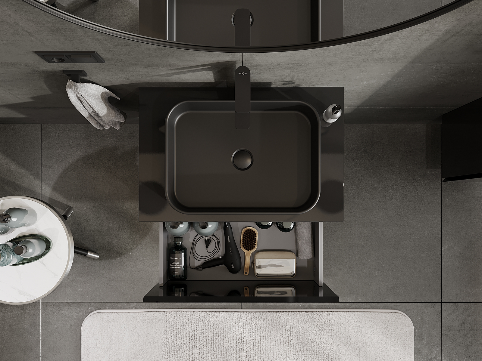 Mexen Orio kúpeľňová skrinka pod umývadlo 70 cm, 1 zásuvka, čierny lesk - 91A10-07047-1-BF70