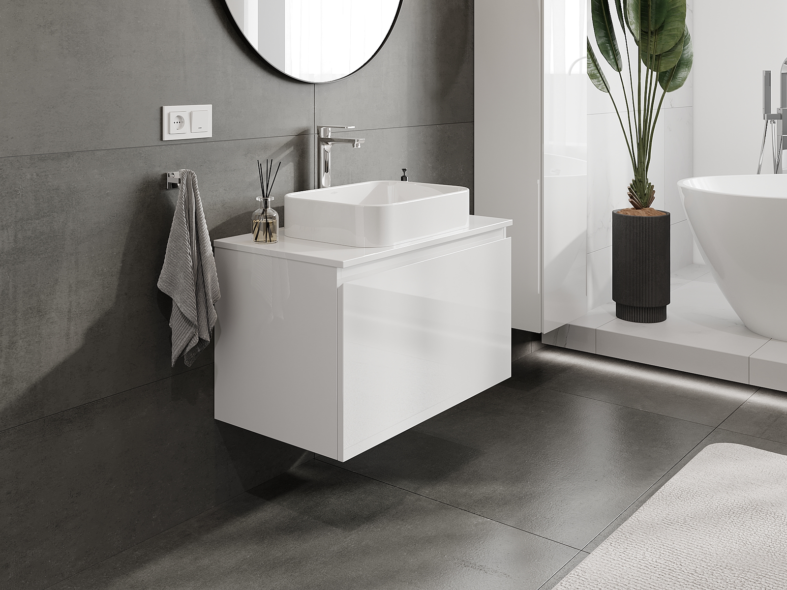 Naše modulárne kúpeľňové nábytkové prvky možno kombinovať v rôznych farebných konfiguráciách, čo umožňuje úplnú personalizáciu. Môžete si vybrať vzhľad aj funkcie jednotlivých prvkov, čo umožňuje prispôsobiť nábytok vašim vlastným štýlovým a používateľským preferenciám.