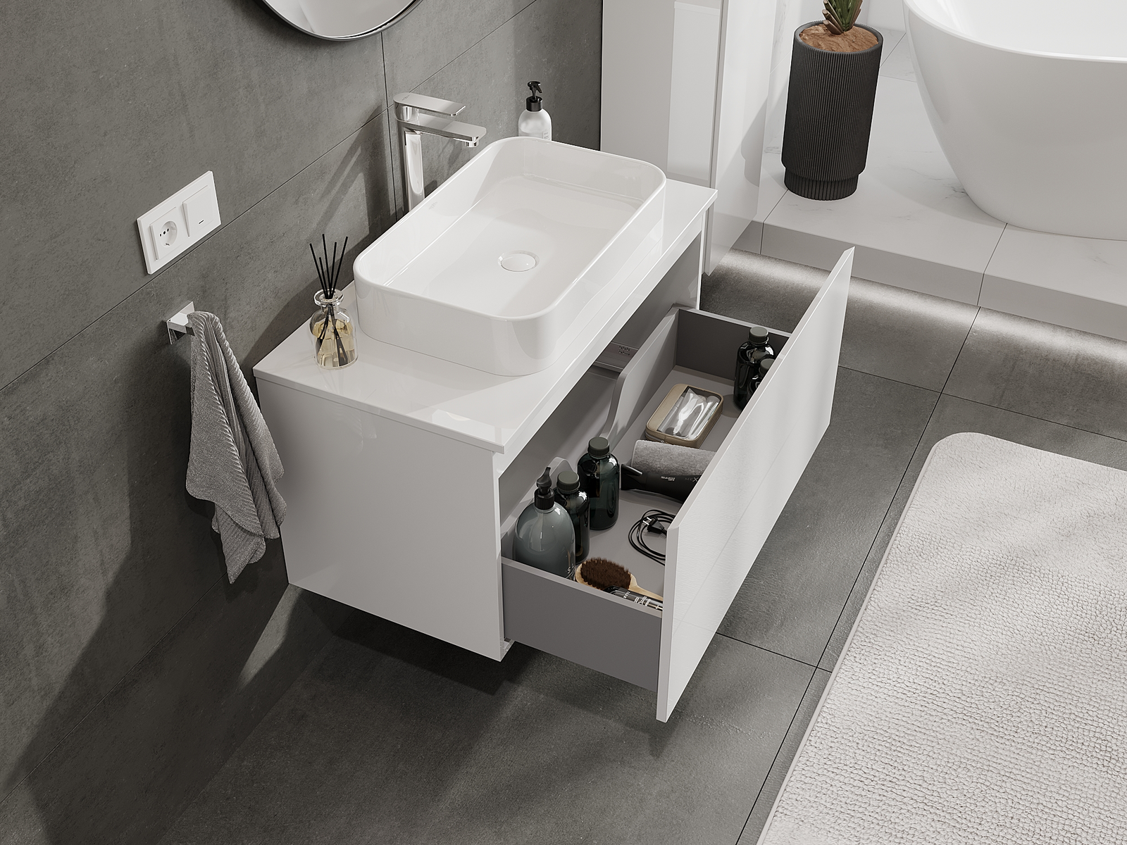 Mexen Orio kúpeľňová skrinka pod umývadlo 90 cm, 1 zásuvka, biela lesk - 91A10-09047-1-BF00