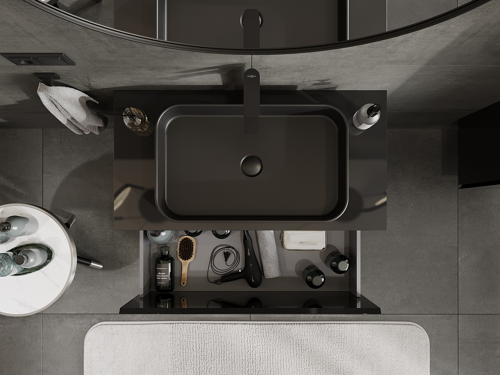 Mexen Orio kúpeľňová skrinka pod umývadlo 90 cm, 1 zásuvka, čierny lesk - 91A10-09047-1-BF70