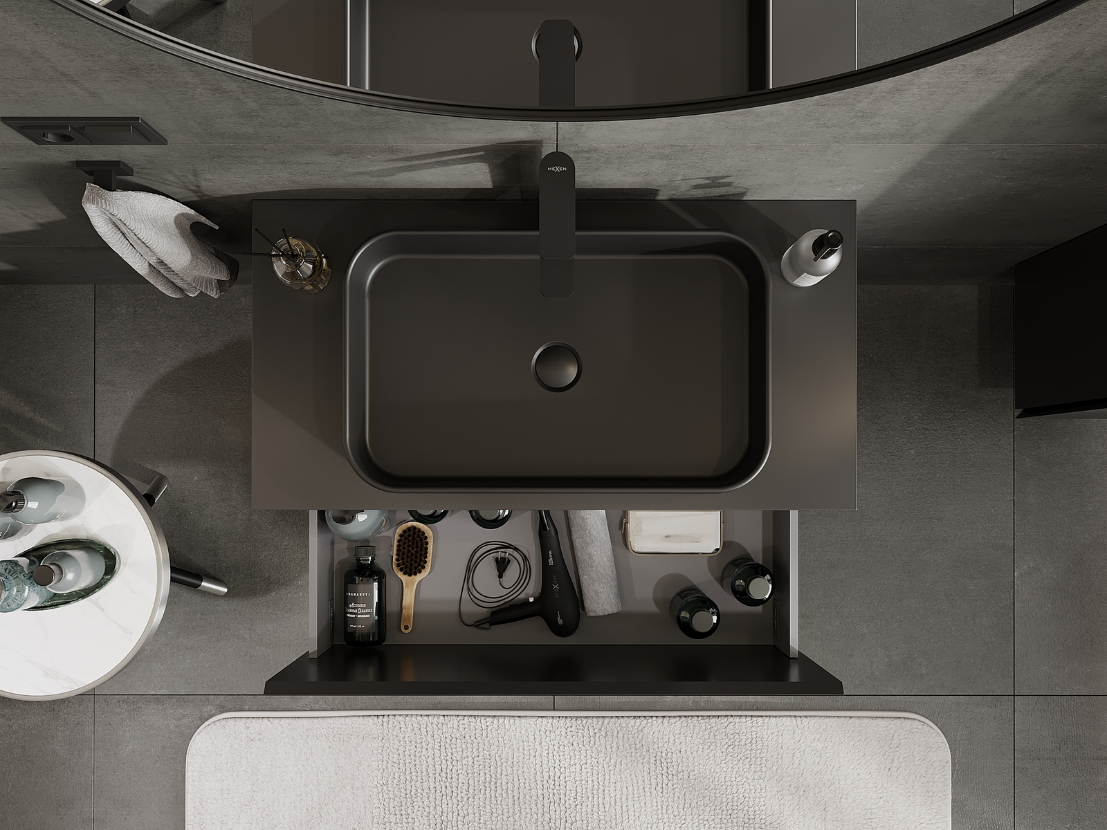 Mexen Orio kúpeľňová skrinka pod umývadlo 90 cm, 1 zásuvka, čierna matná - 91A10-09047-1-BF71