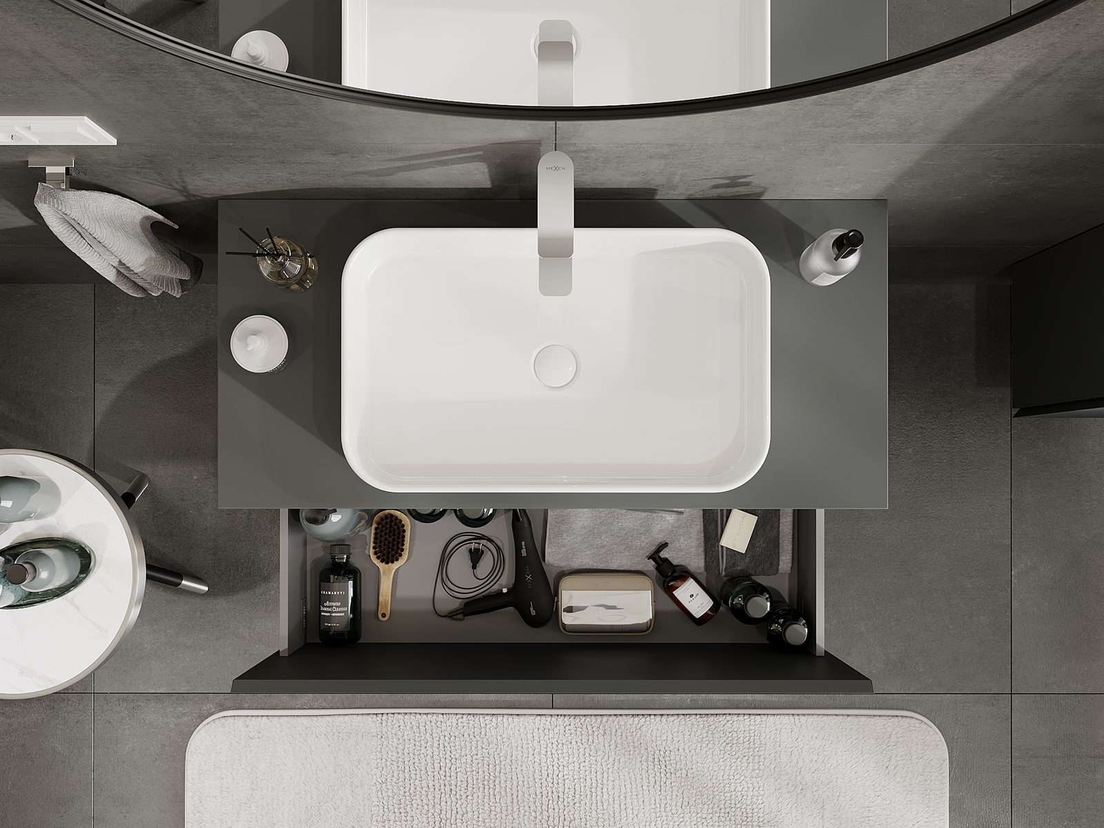 Mexen Orio kúpeľňová skrinka pod umývadlom 100 cm, 1 zásuvka, grafitová matná - 91A10-10047-1-BF66