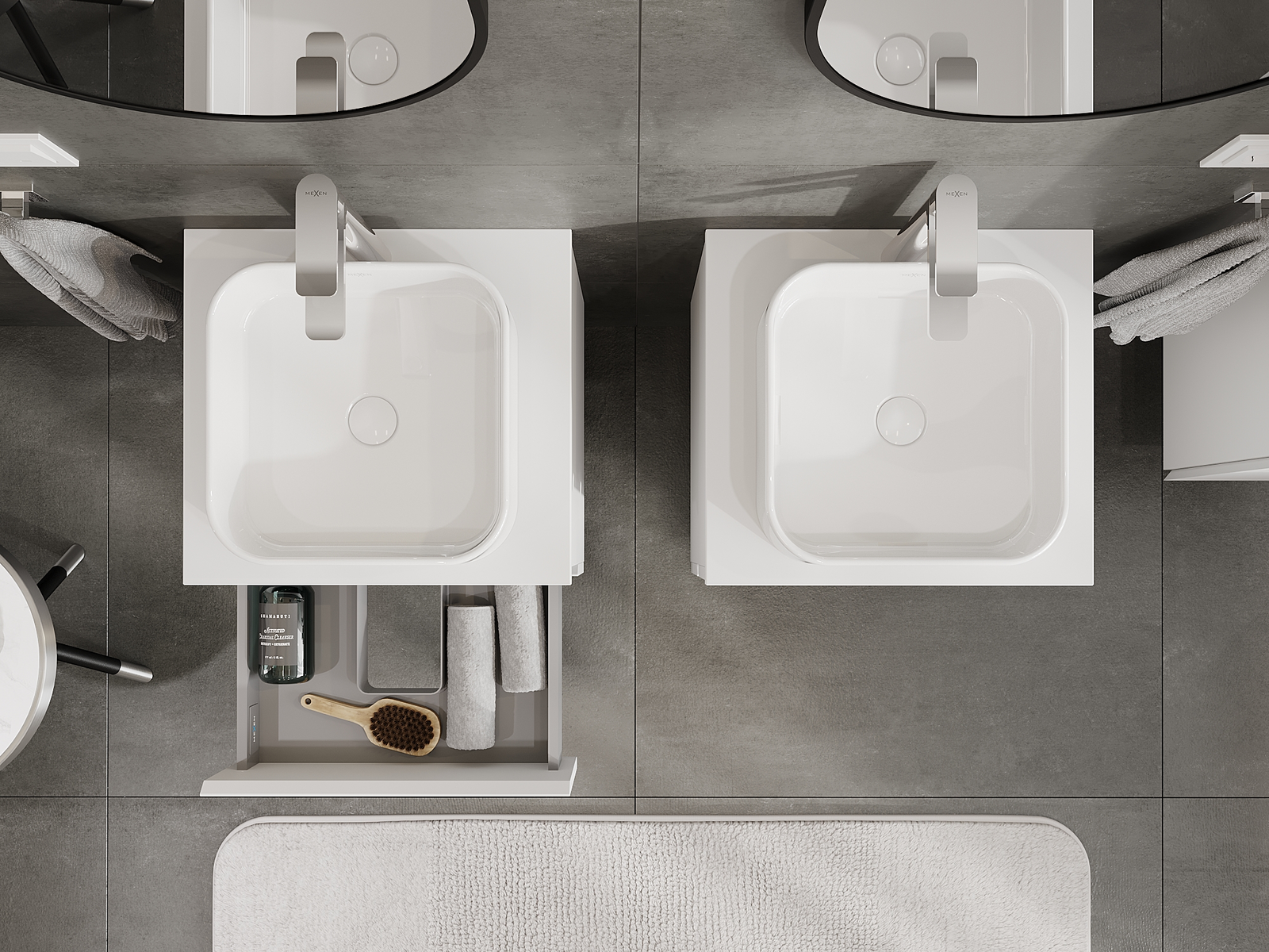 Naše modulárne kúpeľňové nábytkové prvky možno kombinovať v rôznych farebných konfiguráciách, čo umožňuje úplnú personalizáciu. Môžete si vybrať vzhľad aj funkcie jednotlivých prvkov, čo umožňuje prispôsobiť nábytok vašim vlastným štýlovým a používateľským preferenciám.