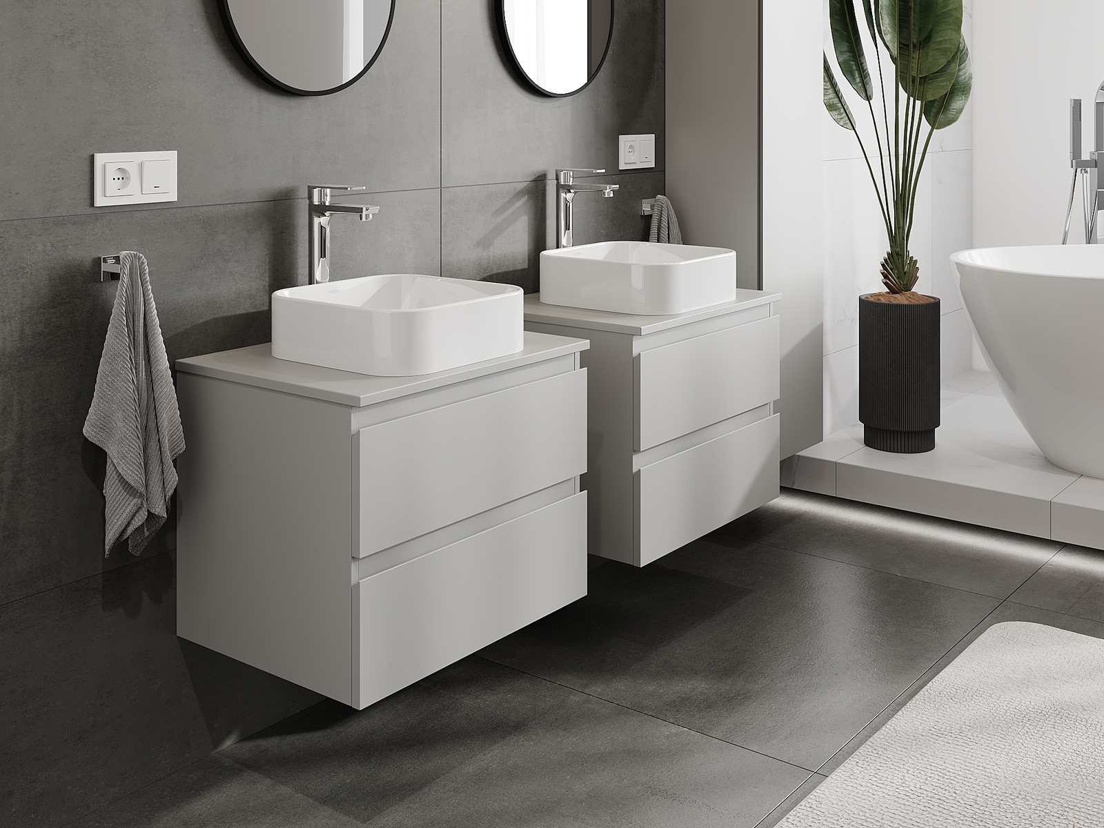 Naše modulárne kúpeľňové nábytkové prvky možno kombinovať v rôznych farebných konfiguráciách, čo umožňuje úplnú personalizáciu. Môžete si vybrať vzhľad aj funkcie jednotlivých prvkov, čo umožňuje prispôsobiť nábytok vašim vlastným štýlovým a používateľským preferenciám.