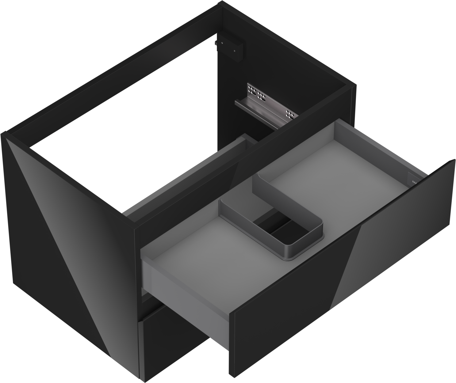 Výrez v zásuvke je navrhnutý tak, aby pojal sifón, ktorý je nevyhnutný v umývadlových inštaláciách. Vďaka tomu môže byť nábytok namontovaný plne funkčne, bez nutnosti vzdávať sa priestoru v zásuvke v prospech inštalácie.