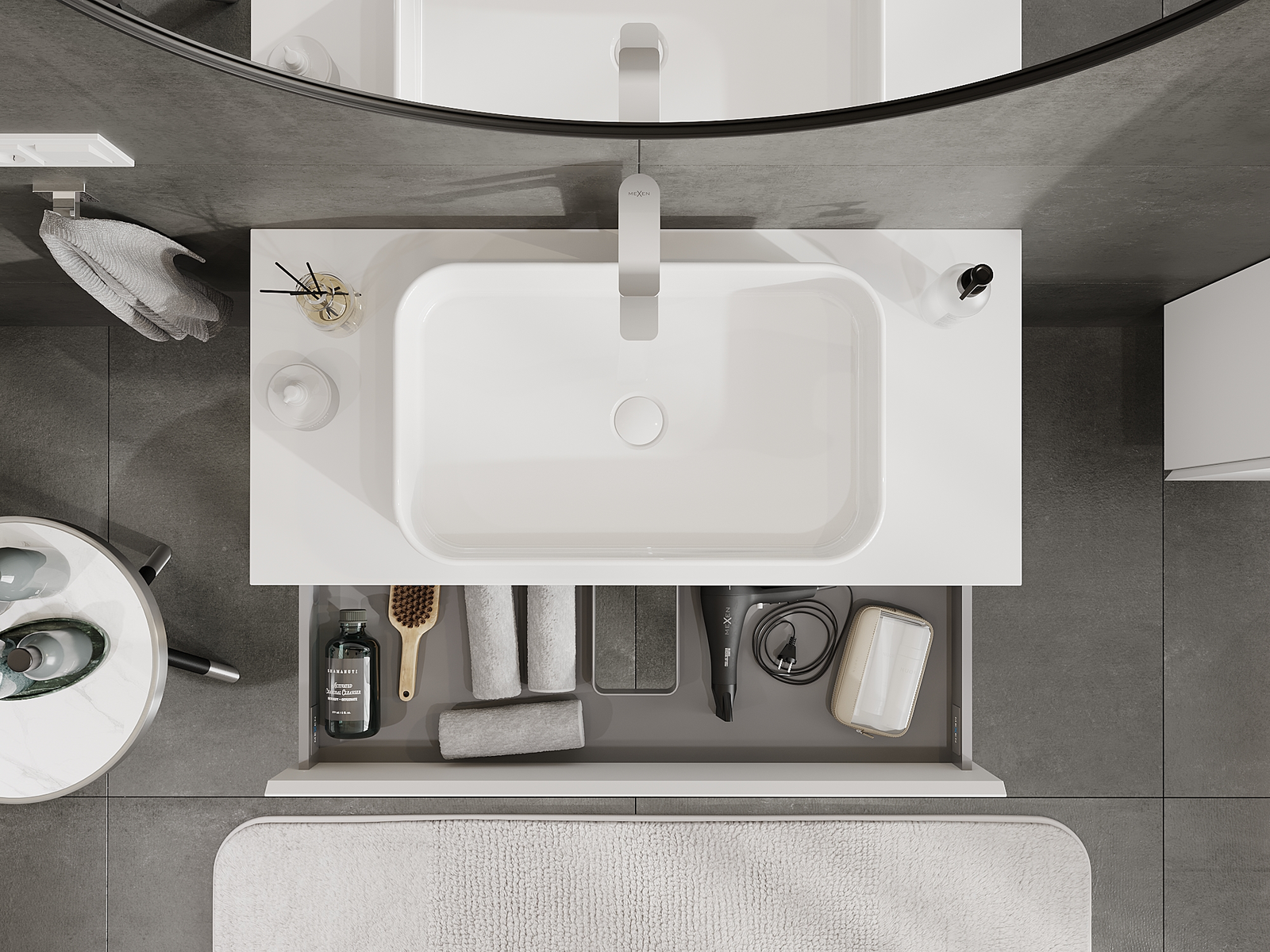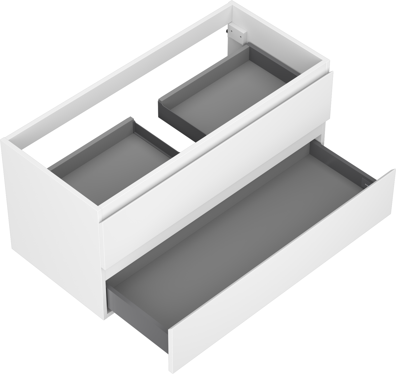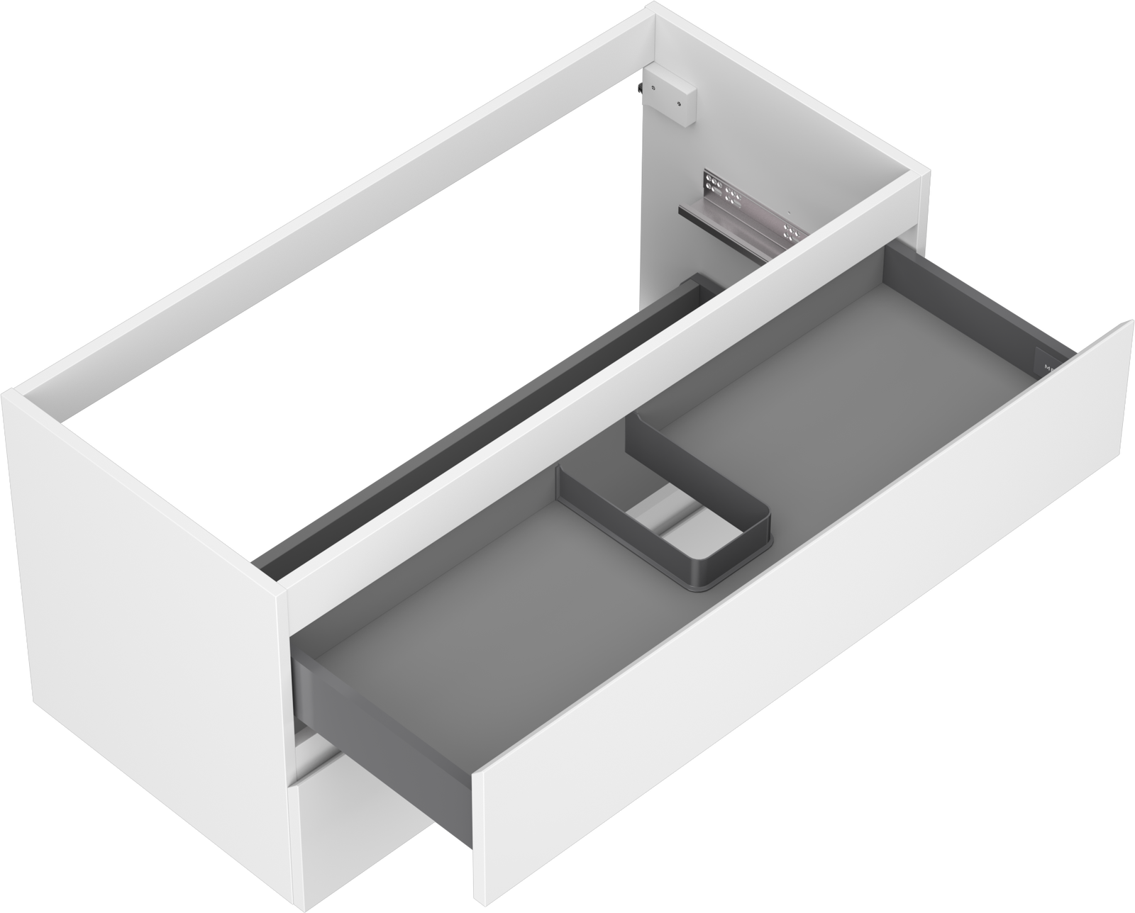 Výrez v zásuvke je navrhnutý tak, aby pojal sifón, ktorý je nevyhnutný v umývadlových inštaláciách. Vďaka tomu môže byť nábytok namontovaný plne funkčne, bez nutnosti vzdávať sa priestoru v zásuvke v prospech inštalácie.