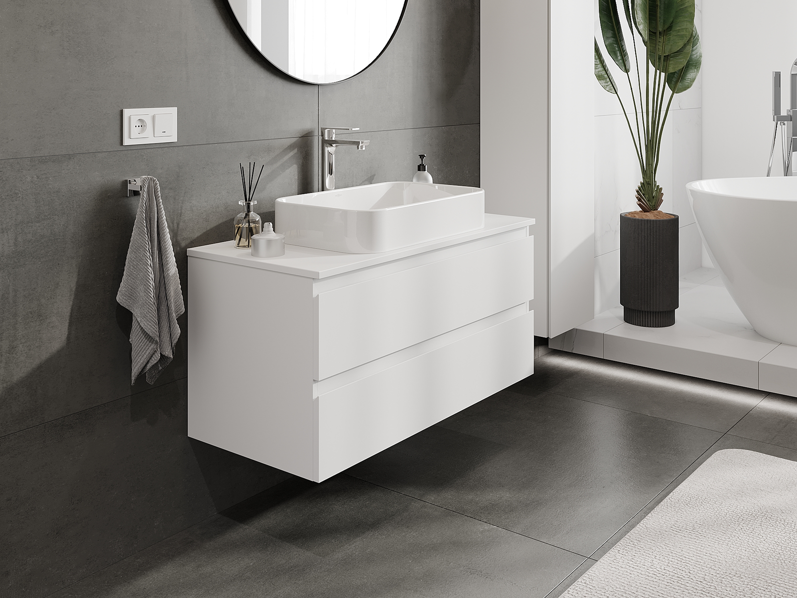 Naše modulárne kúpeľňové nábytkové prvky možno kombinovať v rôznych farebných konfiguráciách, čo umožňuje úplnú personalizáciu. Môžete si vybrať vzhľad aj funkcie jednotlivých prvkov, čo umožňuje prispôsobiť nábytok vašim vlastným štýlovým a používateľským preferenciám.