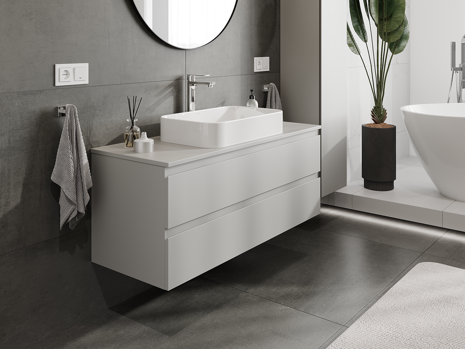 Naše modulárne kúpeľňové nábytkové prvky možno kombinovať v rôznych farebných konfiguráciách, čo umožňuje úplnú personalizáciu. Môžete si vybrať vzhľad aj funkcie jednotlivých prvkov, čo umožňuje prispôsobiť nábytok vašim vlastným štýlovým a používateľským preferenciám.