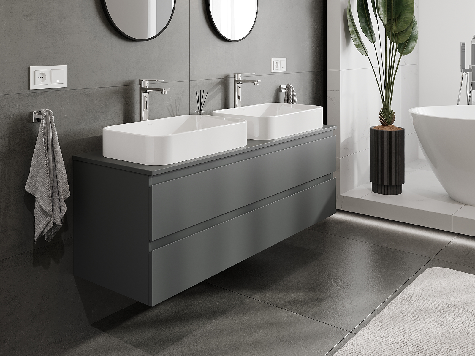 Naše modulárne kúpeľňové nábytkové prvky možno kombinovať v rôznych farebných konfiguráciách, čo umožňuje úplnú personalizáciu. Môžete si vybrať vzhľad aj funkcie jednotlivých prvkov, čo umožňuje prispôsobiť nábytok vašim vlastným štýlovým a používateľským preferenciám.