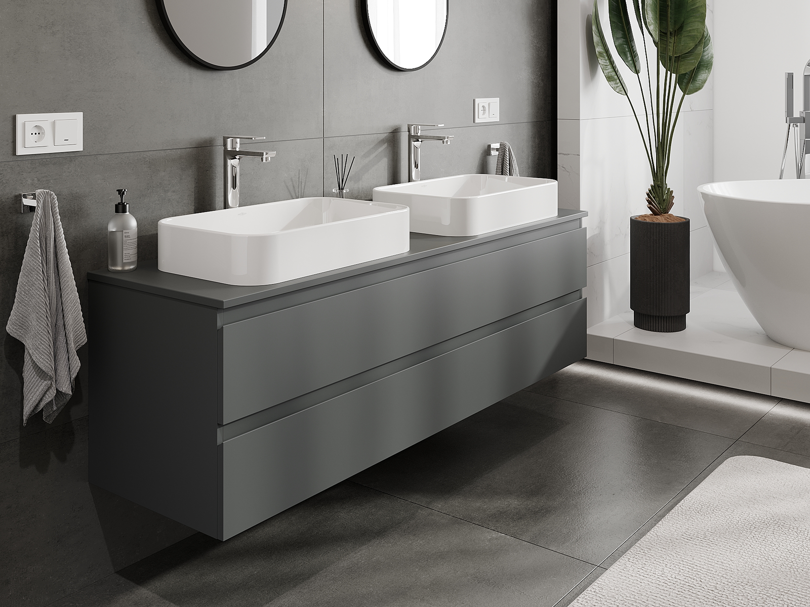Vďaka pevným materiálom, precíznemu prevedeniu a moderným technologickým riešeniam, produkt poskytuje pohodlie používania, odolnosť voči vlhkosti a zmenám teploty, ako aj elegantný vzhľad, ktorý sa hodí k rôznym štýlom kúpeľní.