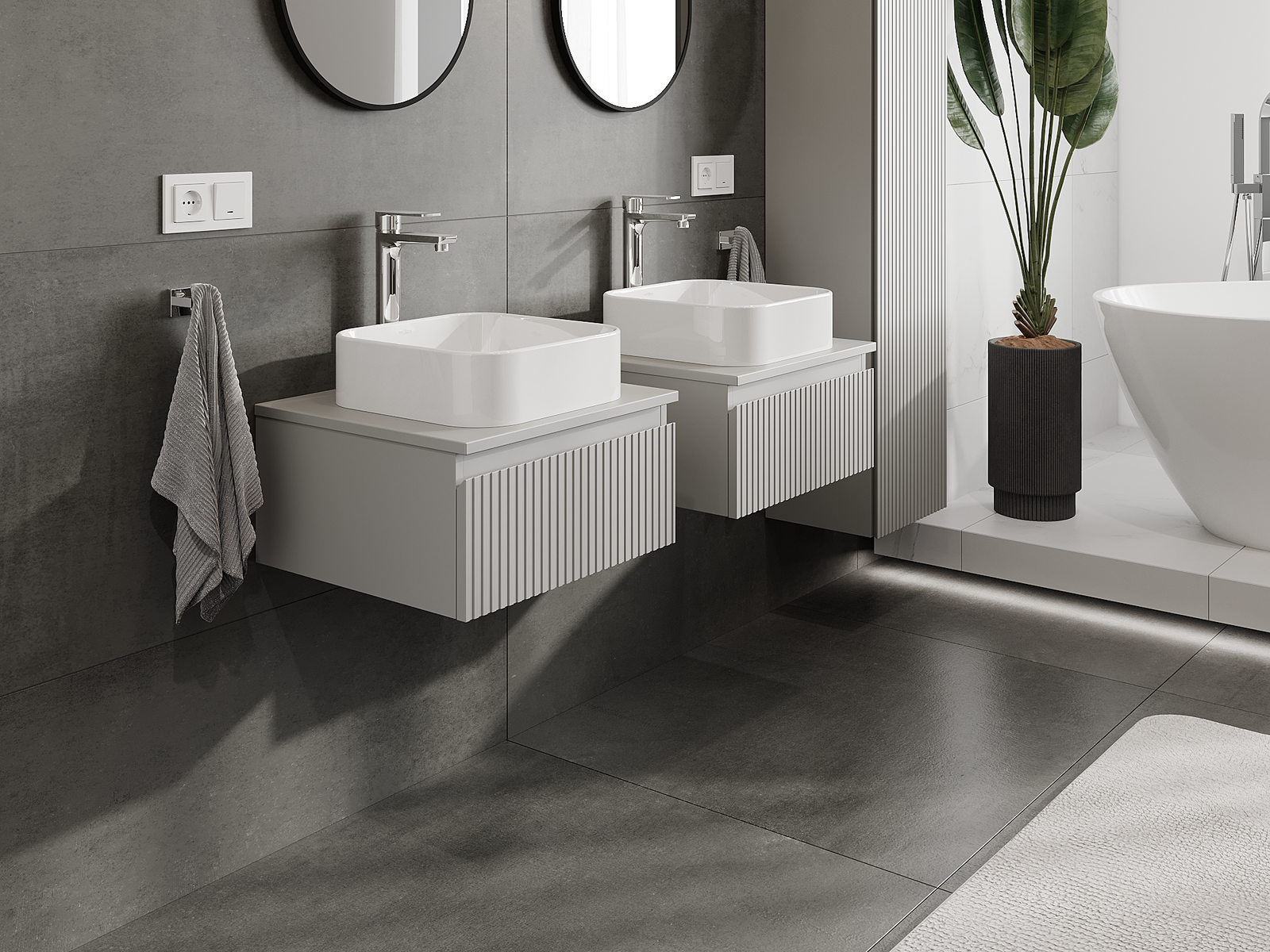 Naše modulárne kúpeľňové nábytkové prvky možno kombinovať v rôznych farebných konfiguráciách, čo umožňuje úplnú personalizáciu. Môžete si vybrať vzhľad aj funkcie jednotlivých prvkov, čo umožňuje prispôsobiť nábytok vašim vlastným štýlovým a používateľským preferenciám.