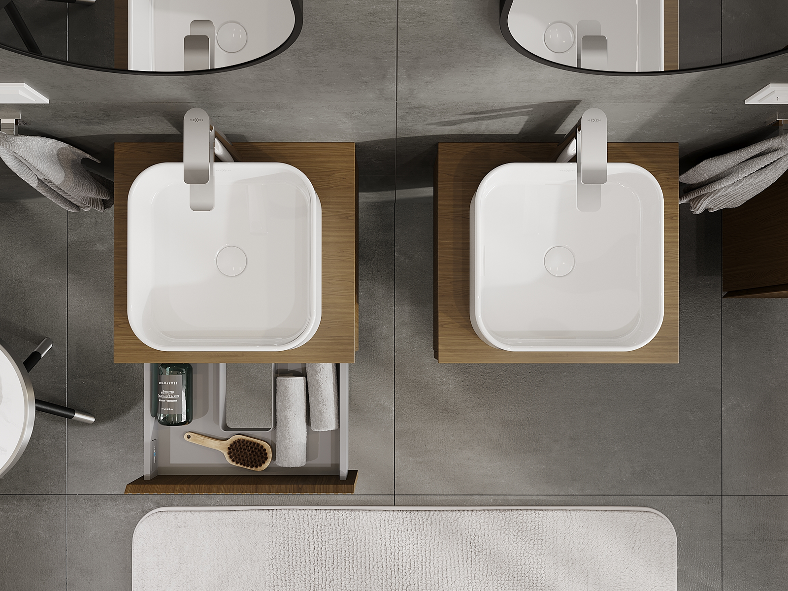 Naše modulárne kúpeľňové nábytkové prvky možno kombinovať v rôznych farebných konfiguráciách, čo umožňuje úplnú personalizáciu. Môžete si vybrať vzhľad aj funkcie jednotlivých prvkov, čo umožňuje prispôsobiť nábytok vašim vlastným štýlovým a používateľským preferenciám.