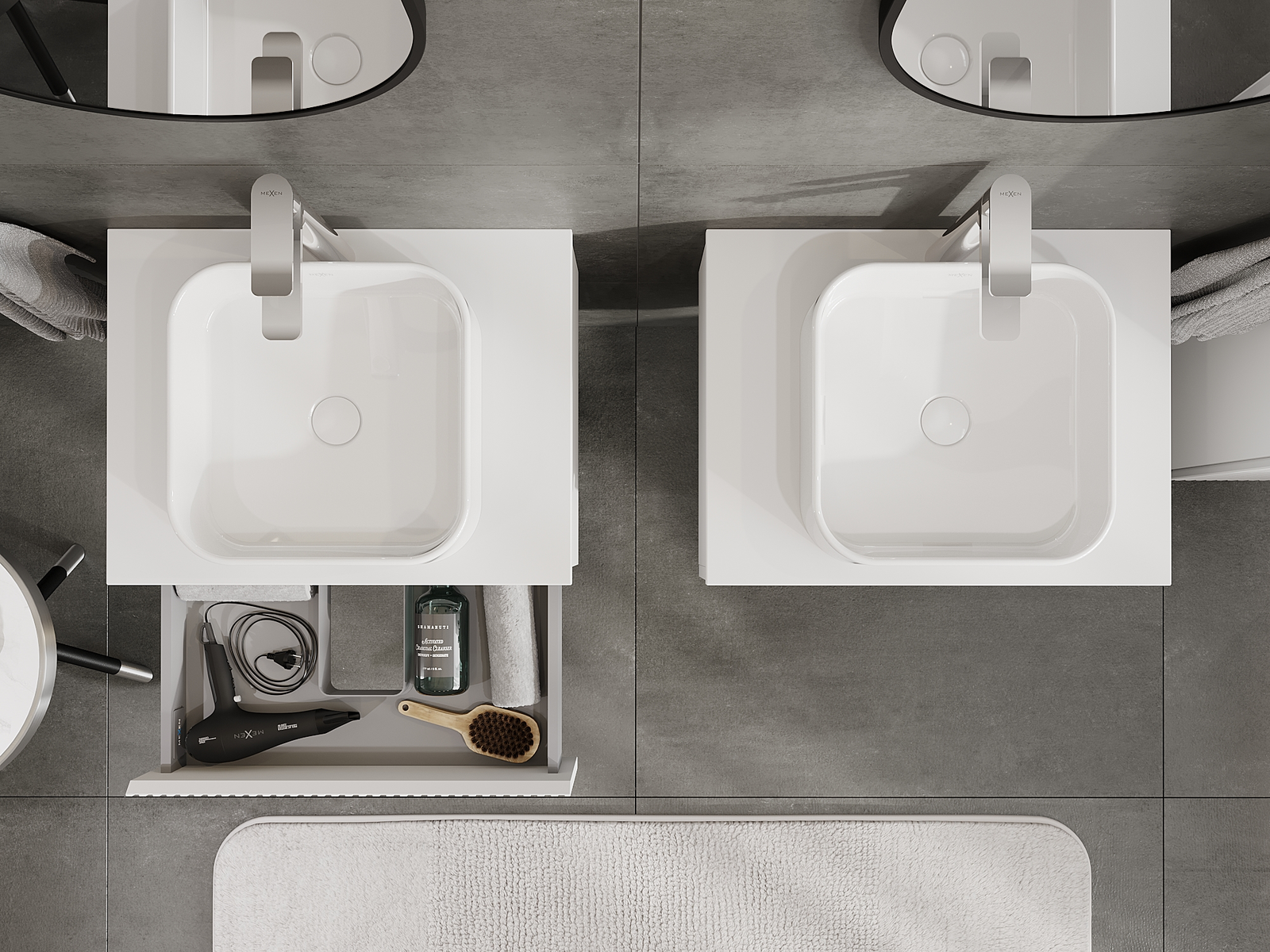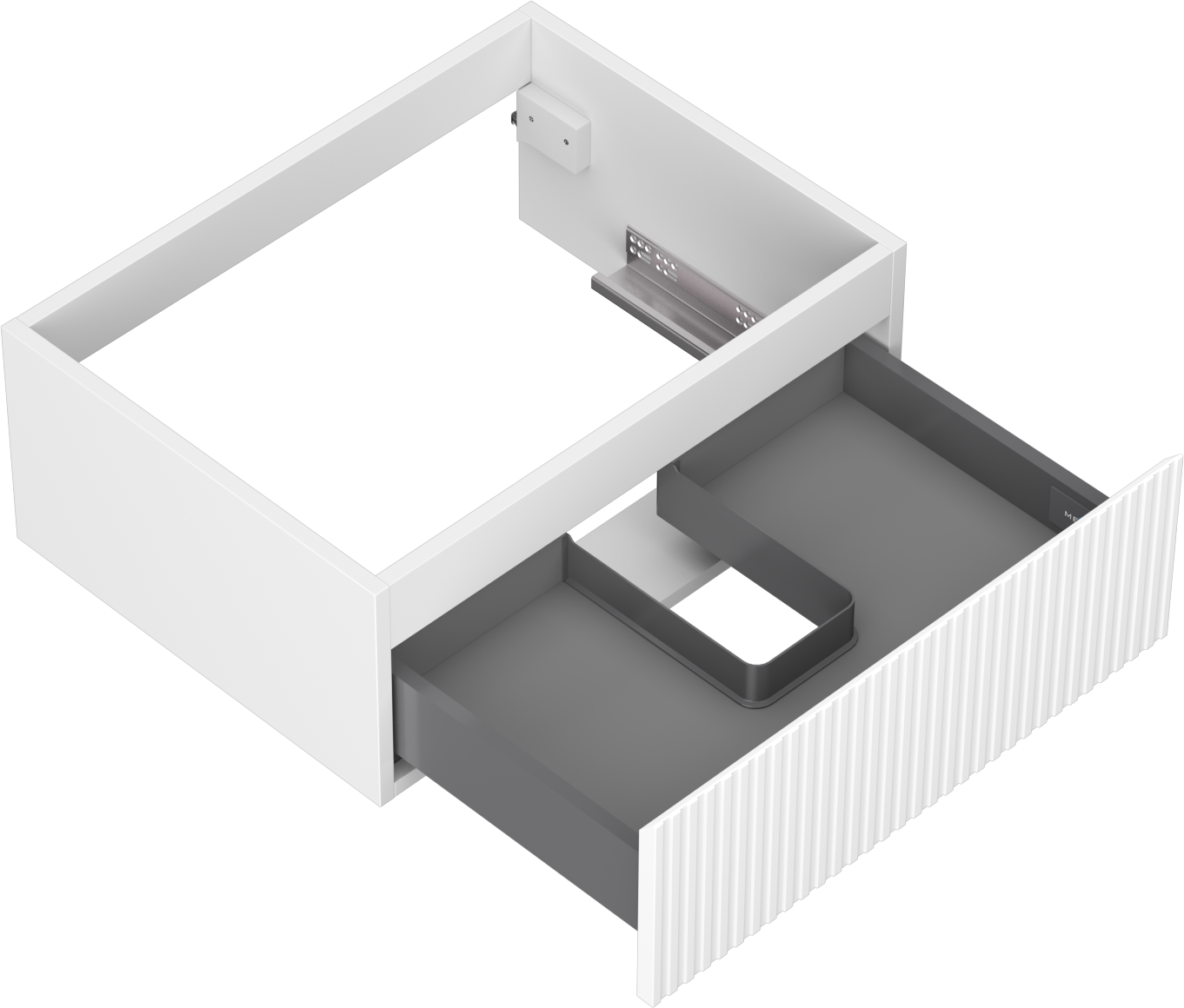 Výrez v zásuvke je navrhnutý tak, aby pojal sifón, ktorý je nevyhnutný v umývadlových inštaláciách. Vďaka tomu môže byť nábytok namontovaný plne funkčne, bez nutnosti vzdávať sa priestoru v zásuvke v prospech inštalácie.