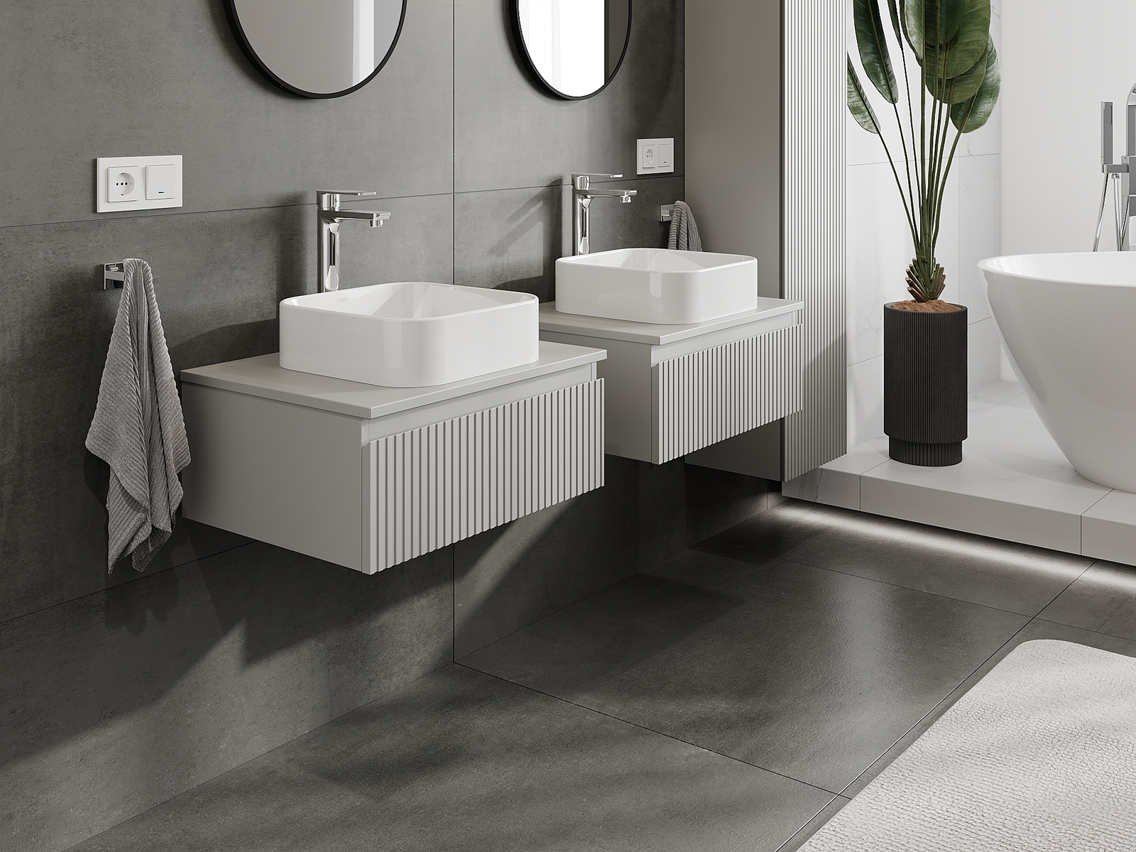 Naše modulárne kúpeľňové nábytkové prvky možno kombinovať v rôznych farebných konfiguráciách, čo umožňuje úplnú personalizáciu. Môžete si vybrať vzhľad aj funkcie jednotlivých prvkov, čo umožňuje prispôsobiť nábytok vašim vlastným štýlovým a používateľským preferenciám.