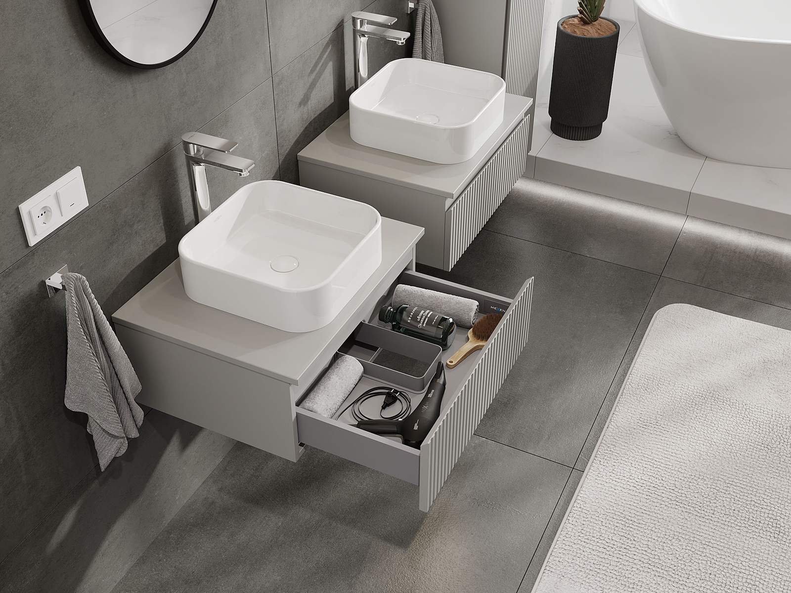 Mexen Rivel kúpeľňová skrinka pod umývadlo 60 cm, 1 zásuvka, ryhovaná, šedá matná - 91A20-06023-1-BF62