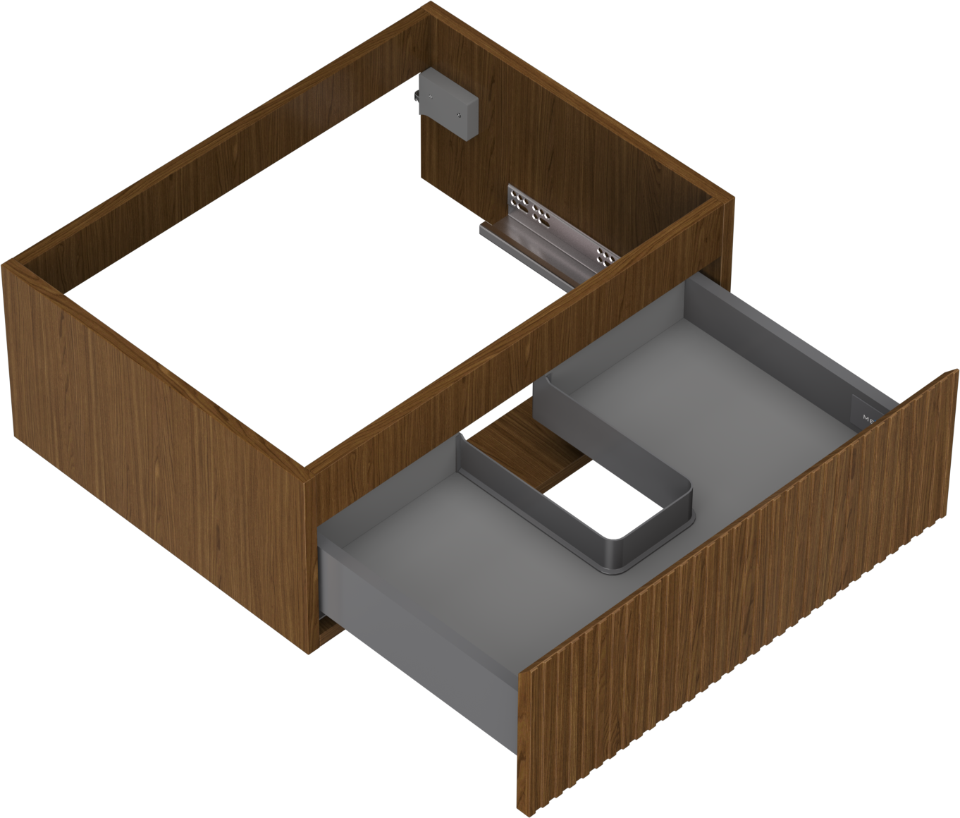 Výrez v zásuvke je navrhnutý tak, aby pojal sifón, ktorý je nevyhnutný v umývadlových inštaláciách. Vďaka tomu môže byť nábytok namontovaný plne funkčne, bez nutnosti vzdávať sa priestoru v zásuvke v prospech inštalácie.