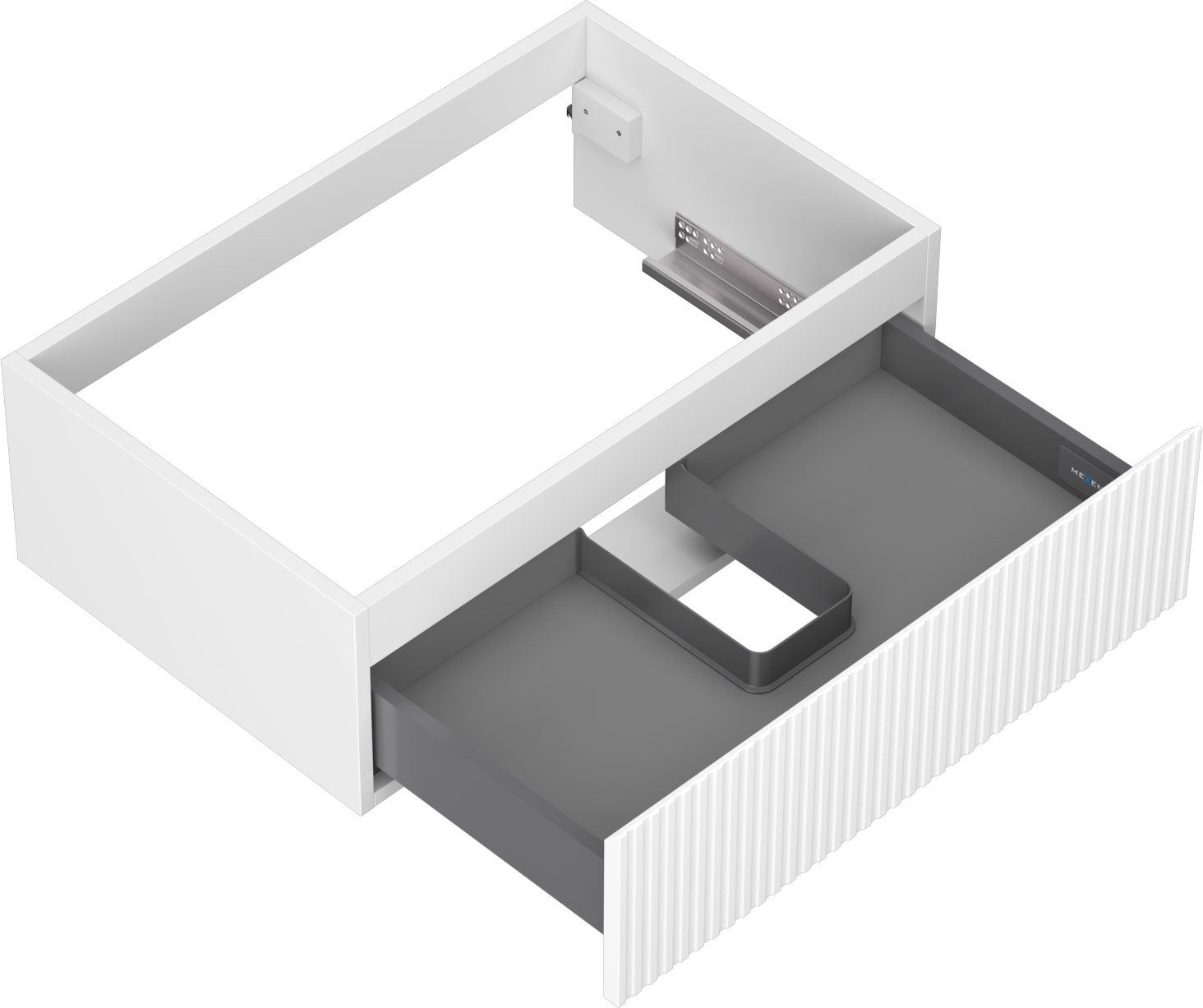 Výrez v zásuvke je navrhnutý tak, aby pojal sifón, ktorý je nevyhnutný v umývadlových inštaláciách. Vďaka tomu môže byť nábytok namontovaný plne funkčne, bez nutnosti vzdávať sa priestoru v zásuvke v prospech inštalácie.