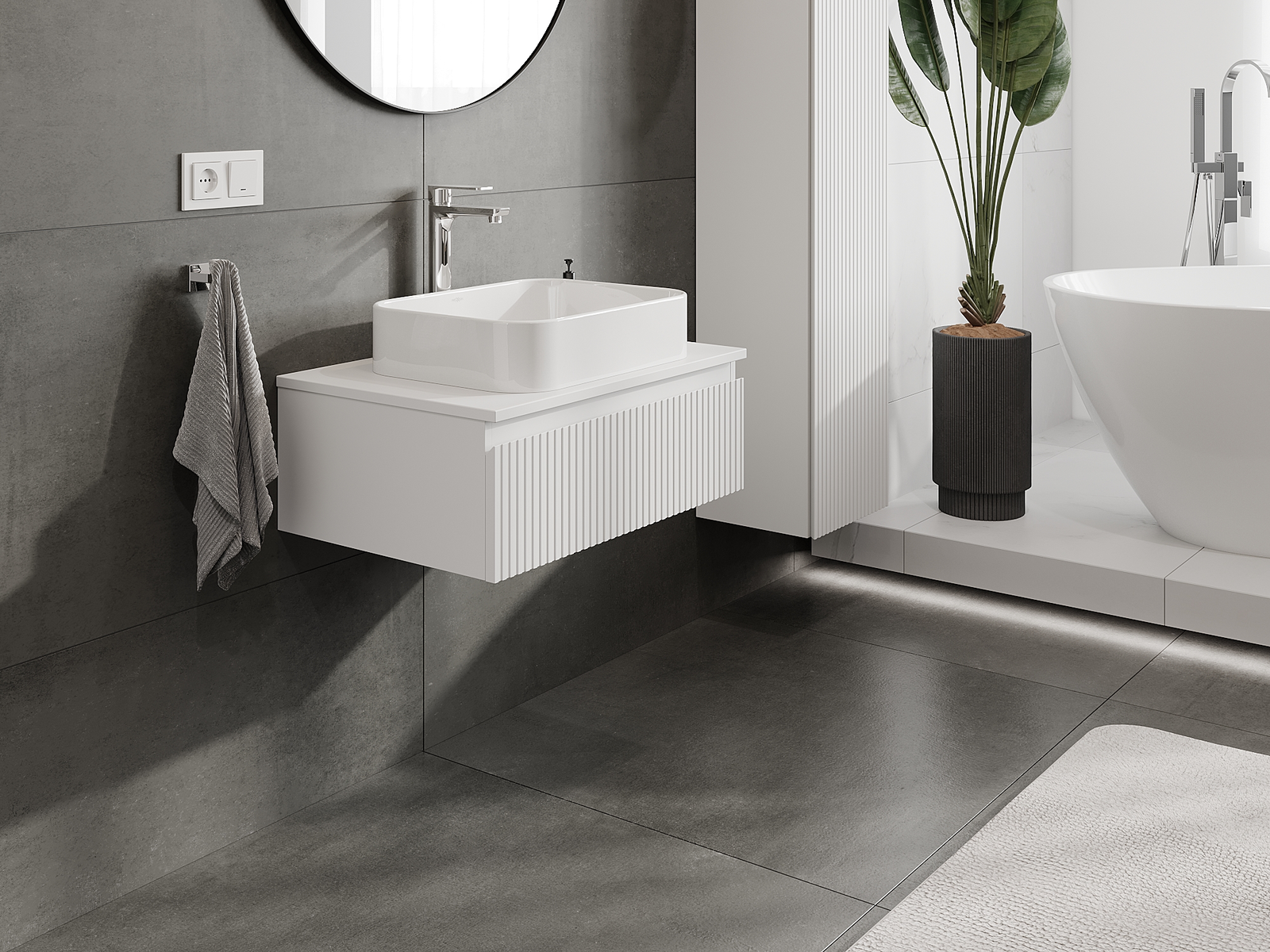 Mexen Rivel kúpeľňová skrinka pod umývadlo 70 cm, 1 zásuvka, drážkovaná, biela matná - 91A20-07023-1-BF01