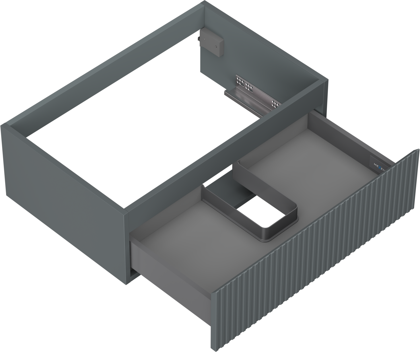 Výrez v zásuvke je navrhnutý tak, aby pojal sifón, ktorý je nevyhnutný v umývadlových inštaláciách. Vďaka tomu môže byť nábytok namontovaný plne funkčne, bez nutnosti vzdávať sa priestoru v zásuvke v prospech inštalácie.